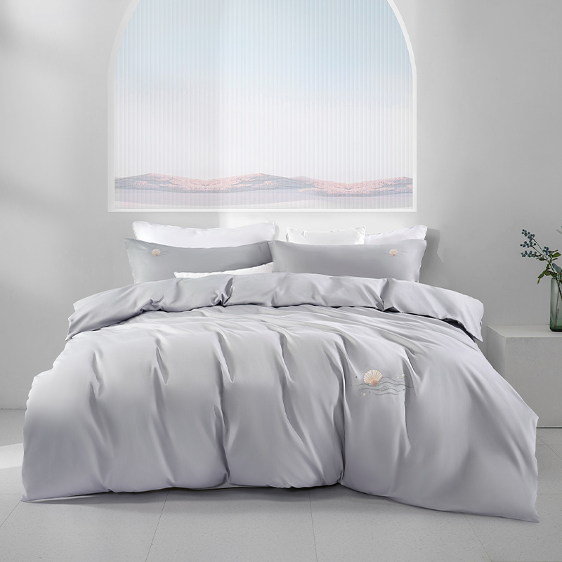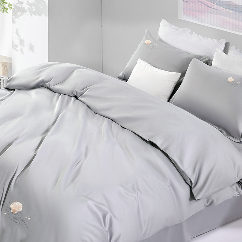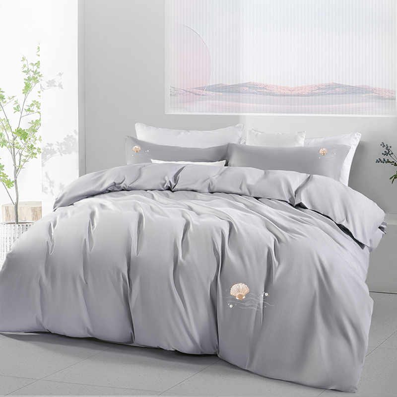 水星家纺 60s刺绣全棉四件套 珀海晨雾200*230