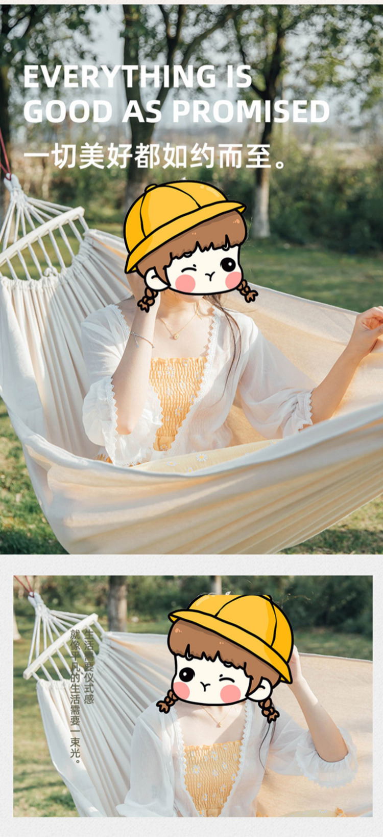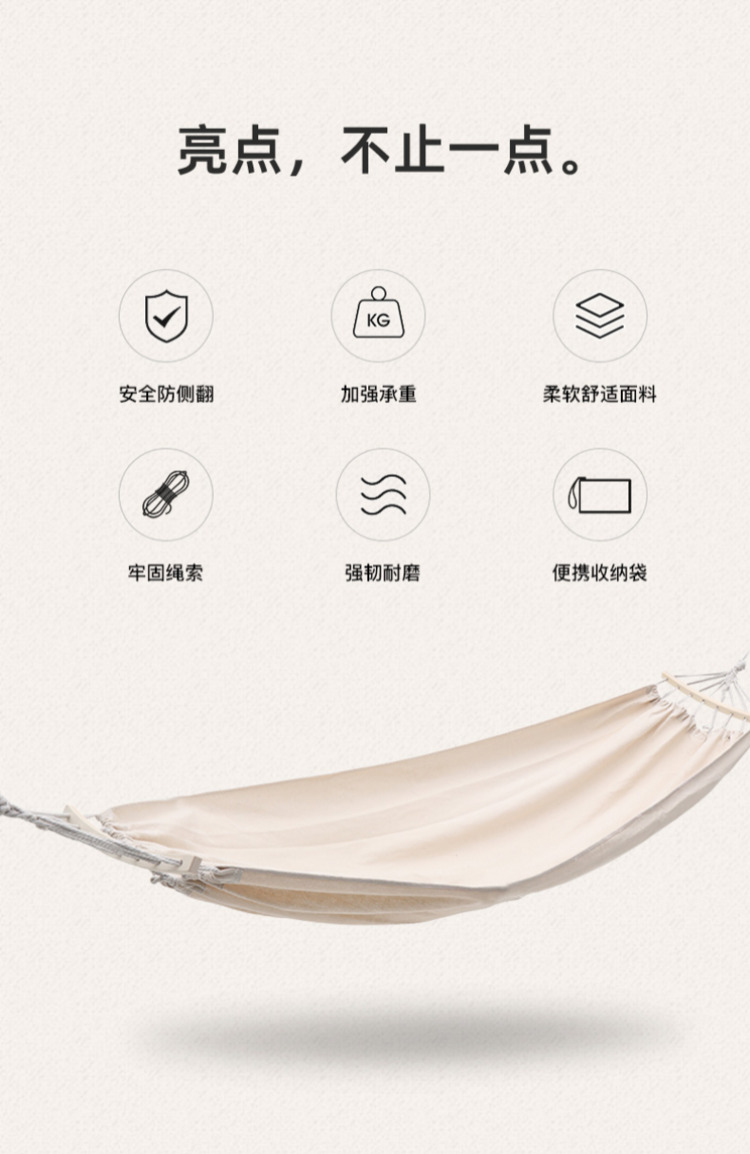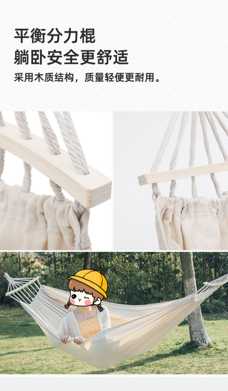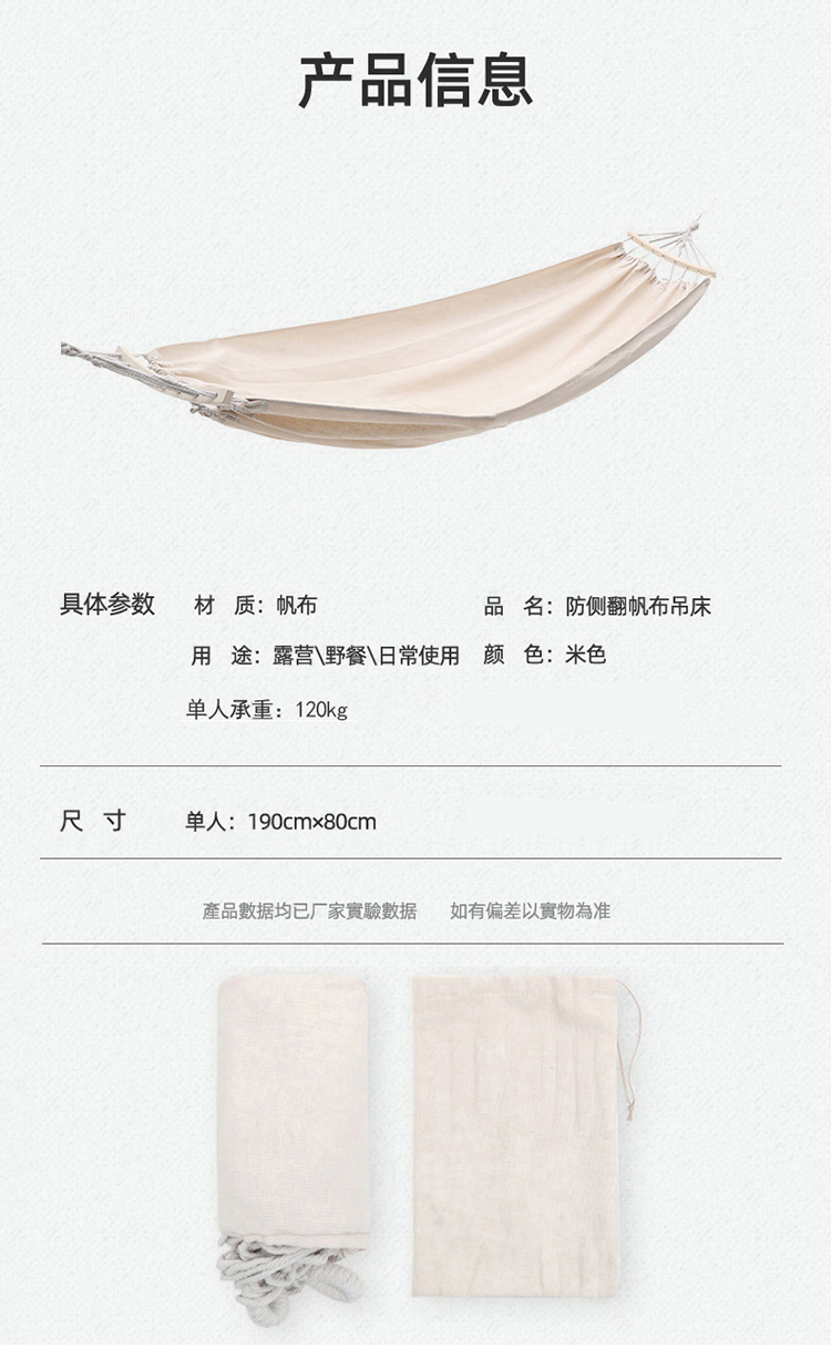 徽羚羊 花间小记 户外出游露营旅游便携防翻透气加厚帆布吊椅 带棍米白色吊床 单人 190*80CMHLY-07109