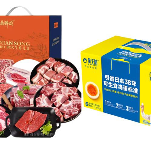黄天鹅 可生食鸡蛋30枚/盒*2+鼎鲜颂 澳洲安格斯原切谷饲698型