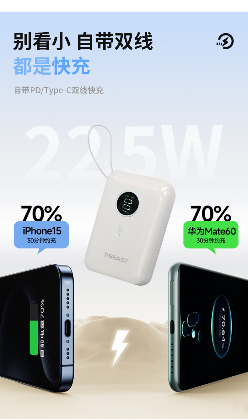 小米米家车载吸尘器+拾光兽 充电宝自带线小巧便携快充口袋电源
