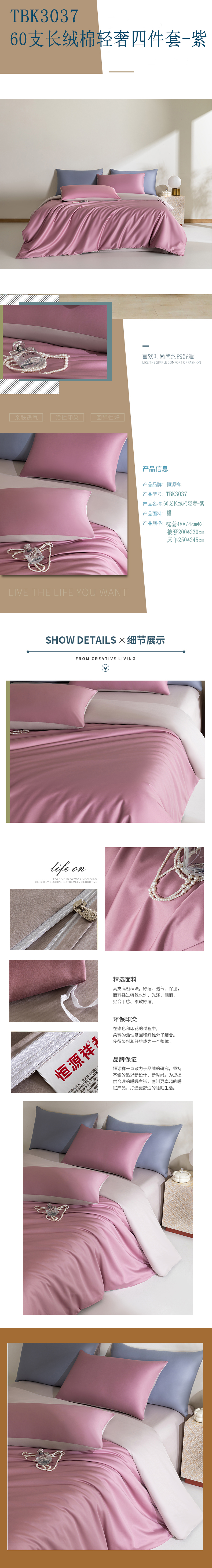恒源祥TBK303760支长绒棉轻奢四件套-紫 +艾贝丽无线除螨仪ABL-CMY72