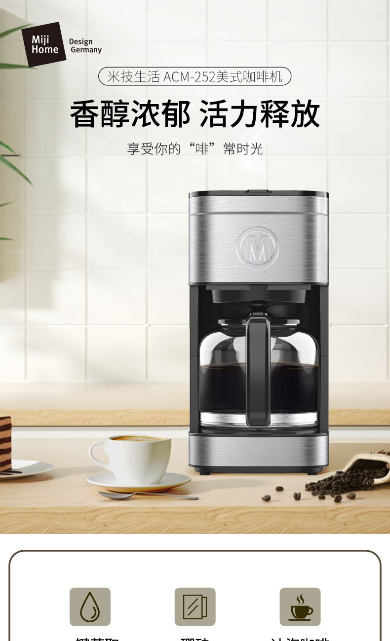 米技 咖啡壶 ACM-252+德世朗 DDQ-LZ619 破壁豆浆机