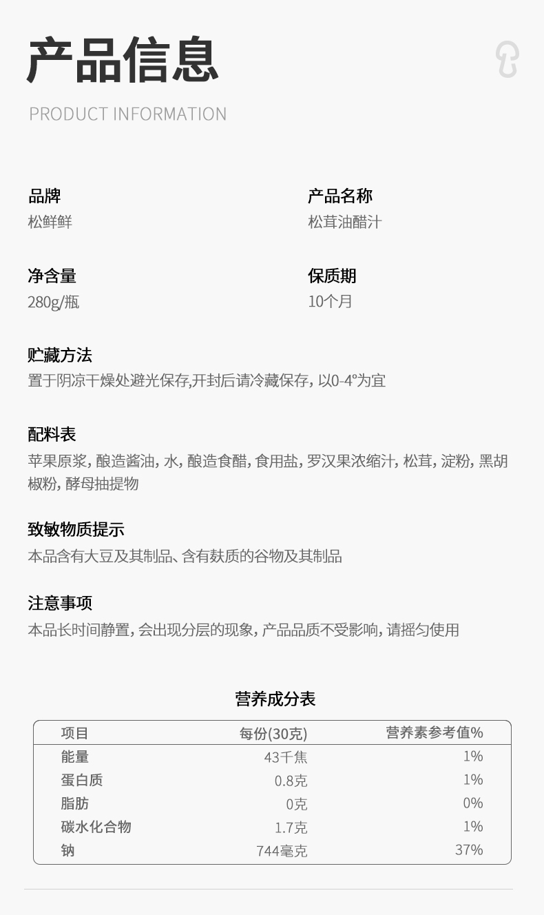 3、松鲜鲜松茸油醋汁280g*1瓶