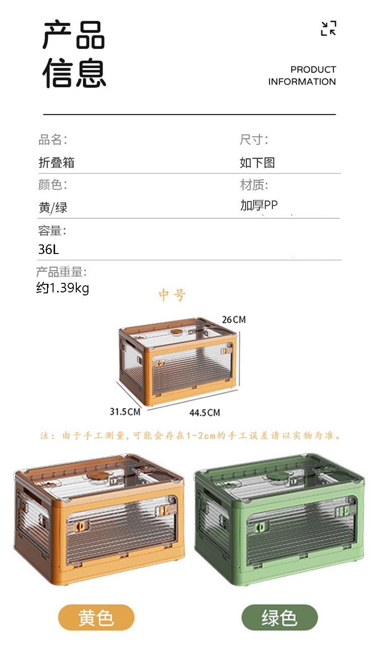 徽羚羊 云具 透明折叠收纳箱 中号 绿色HLY-SNX-22098/黄色HLY-SNX-22095