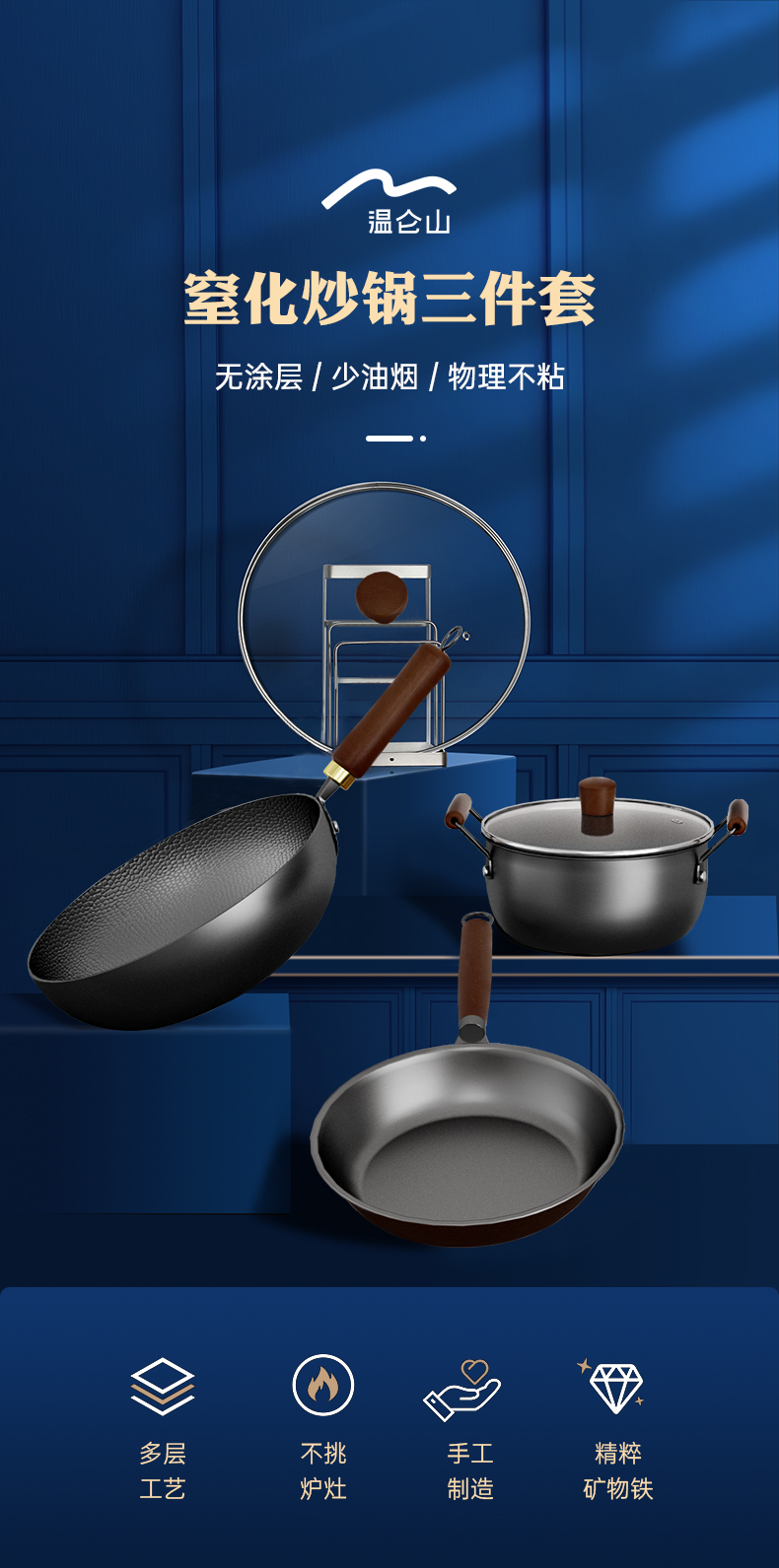 VELOSAN温仑山窒化炒锅三件套