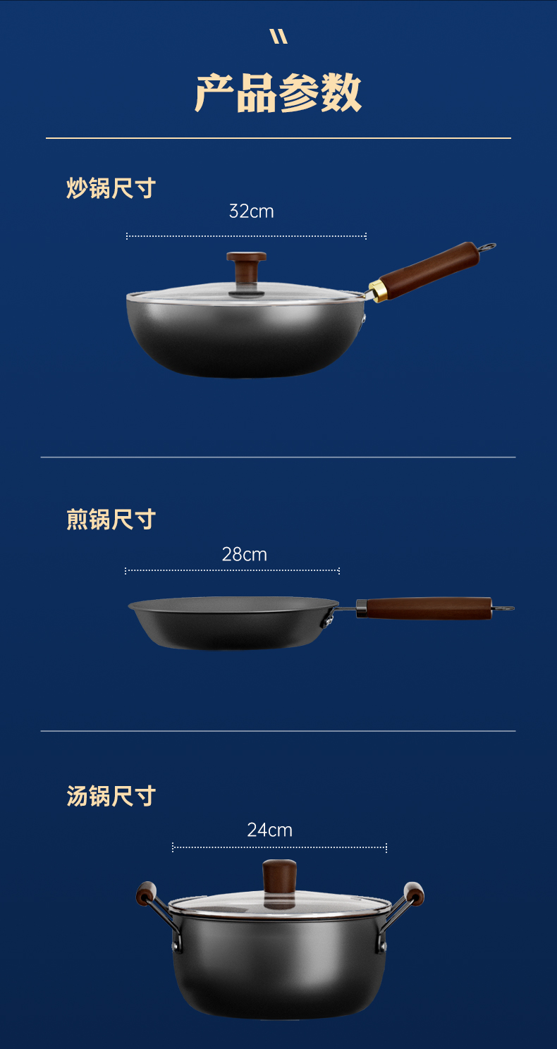 【规格】炒锅32cm、煎锅28cm、汤锅24cm