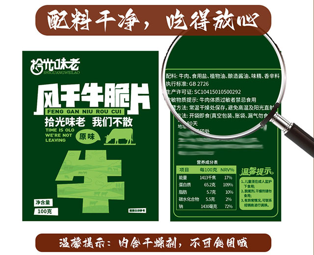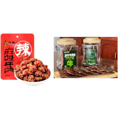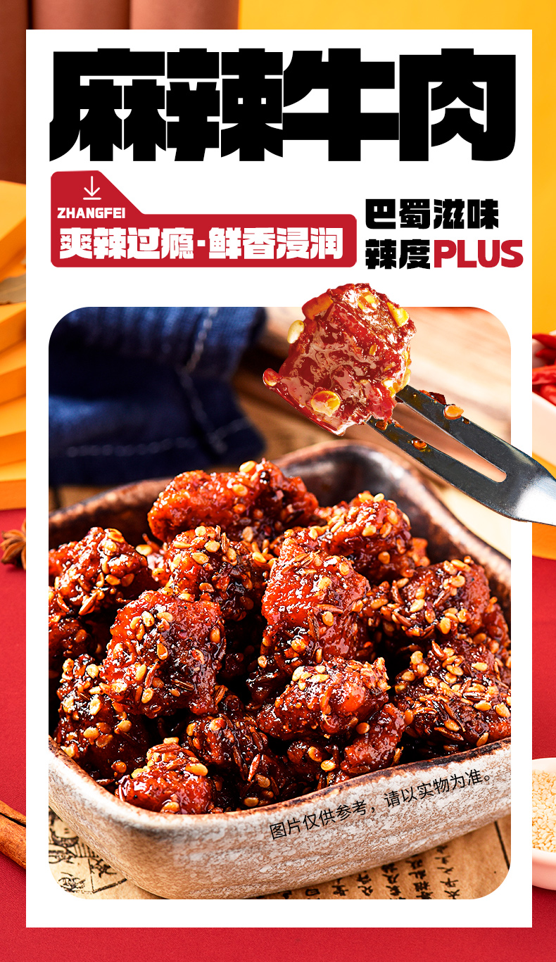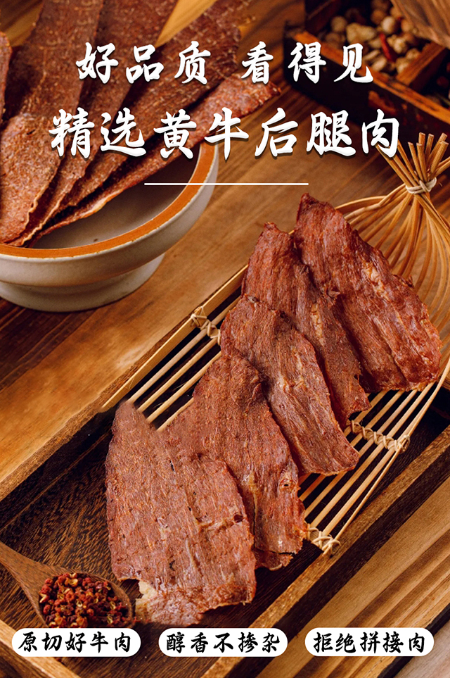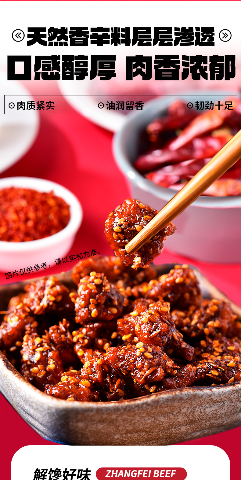 (华虹宏力)【张飞】麻辣牛肉208g*2袋+【拾光味老】风干牛肉脆片