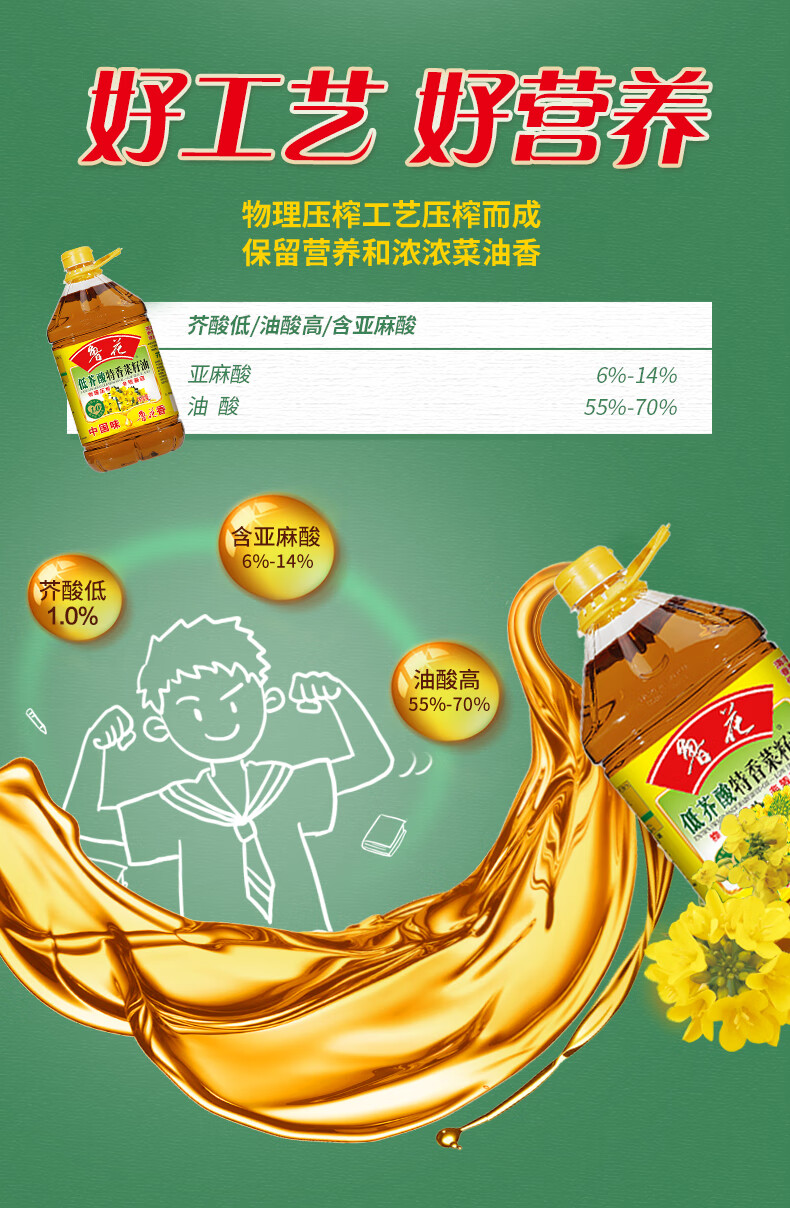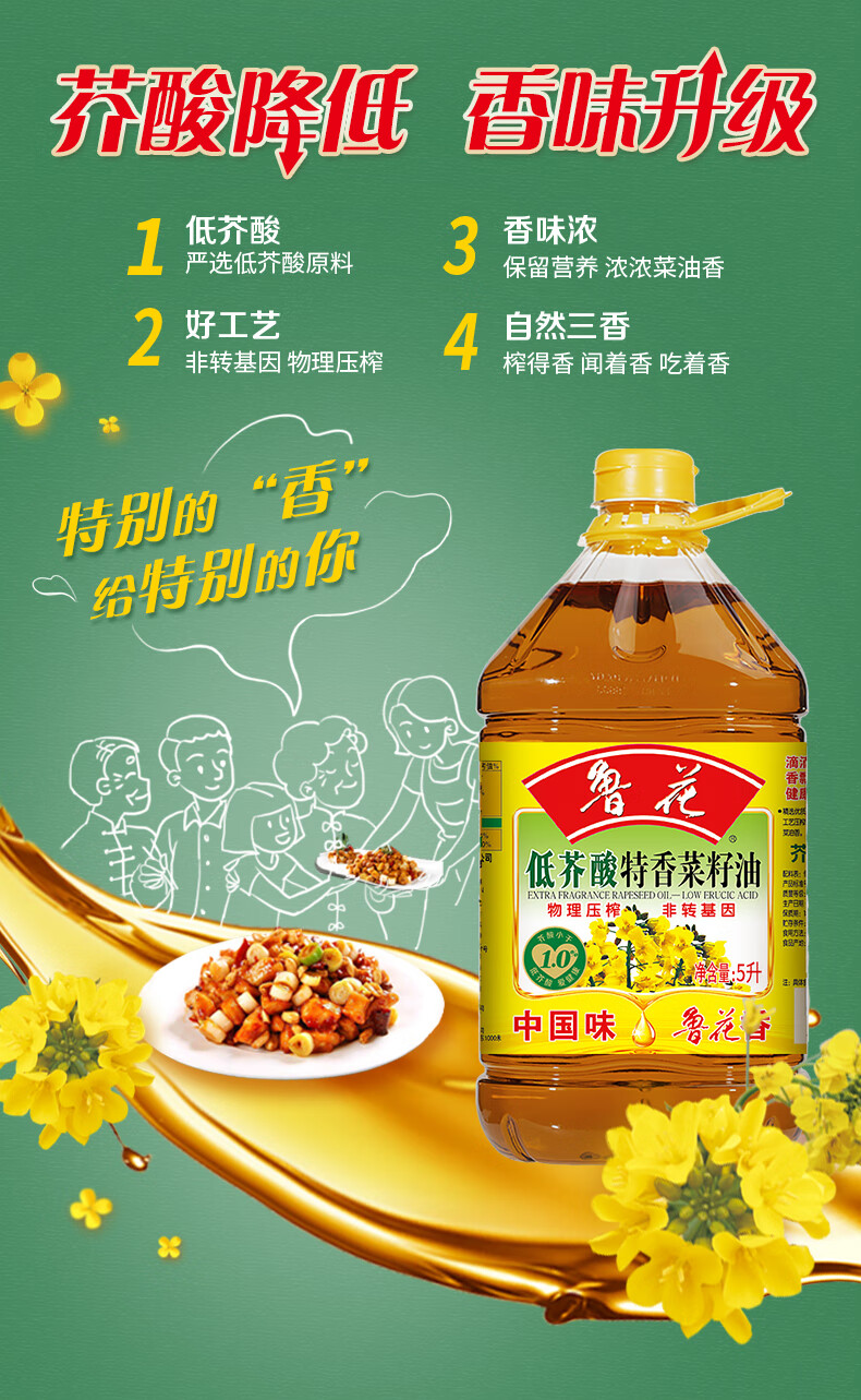 (华虹宏力)【鲁花】低芥酸特香菜籽油5L*1瓶
