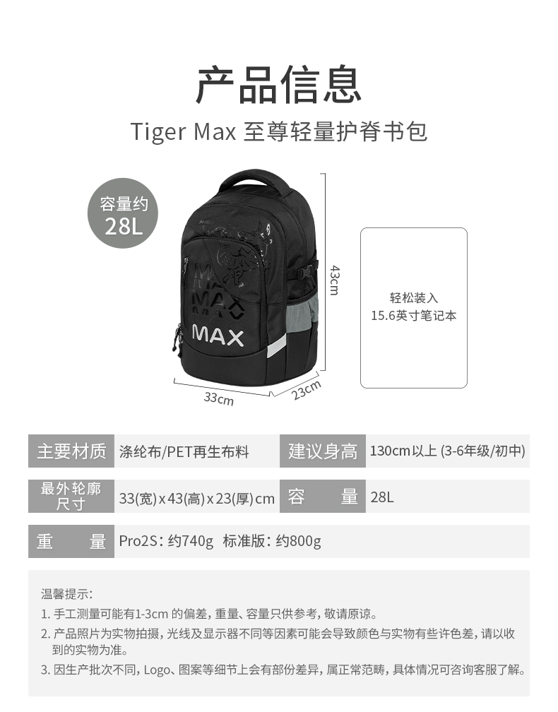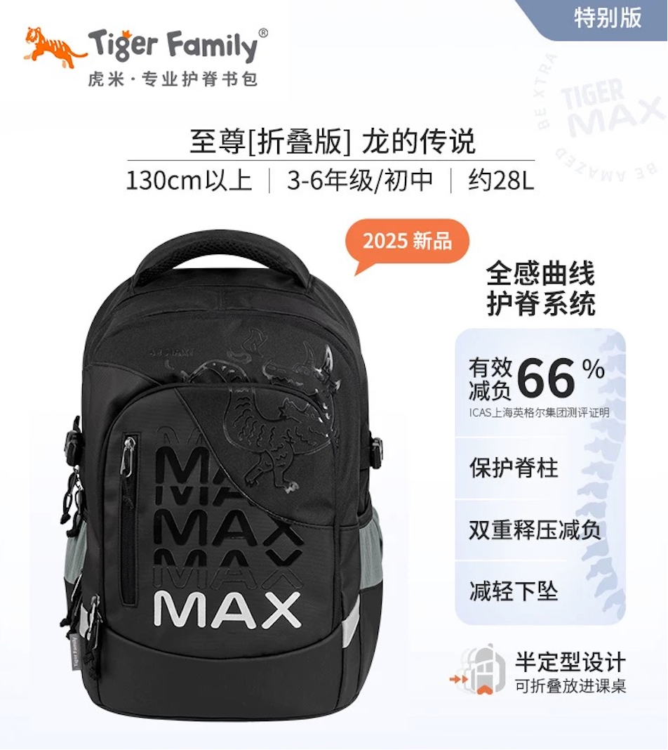 TigerMax至尊轻量护脊书包折叠版28L -龙的传说[特别版]