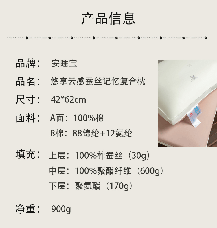 安睡宝SOMERELLE A类母婴级-云感蚕丝枕-单只