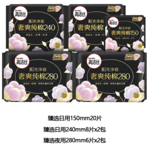 高洁丝(Kotex)卫生巾姨妈巾女日夜用组合装奢爽阳光纯棉臻选日夜组合(共48片)