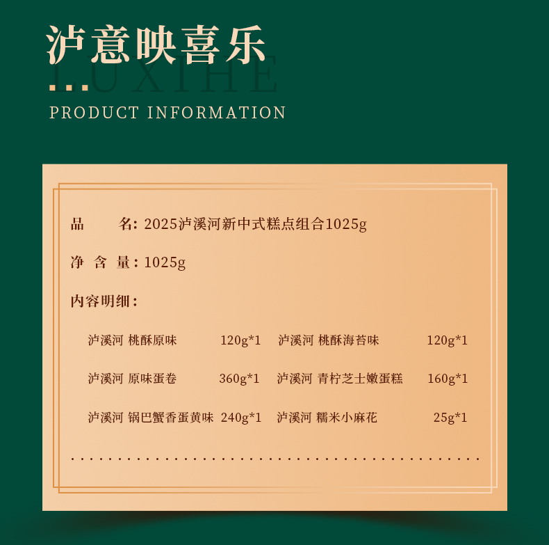 泸溪河2025新中式糕点组合1025g+2025来伊份常规万事如意礼盒A款158型+黄天鹅可生食鸡蛋30枚/盒