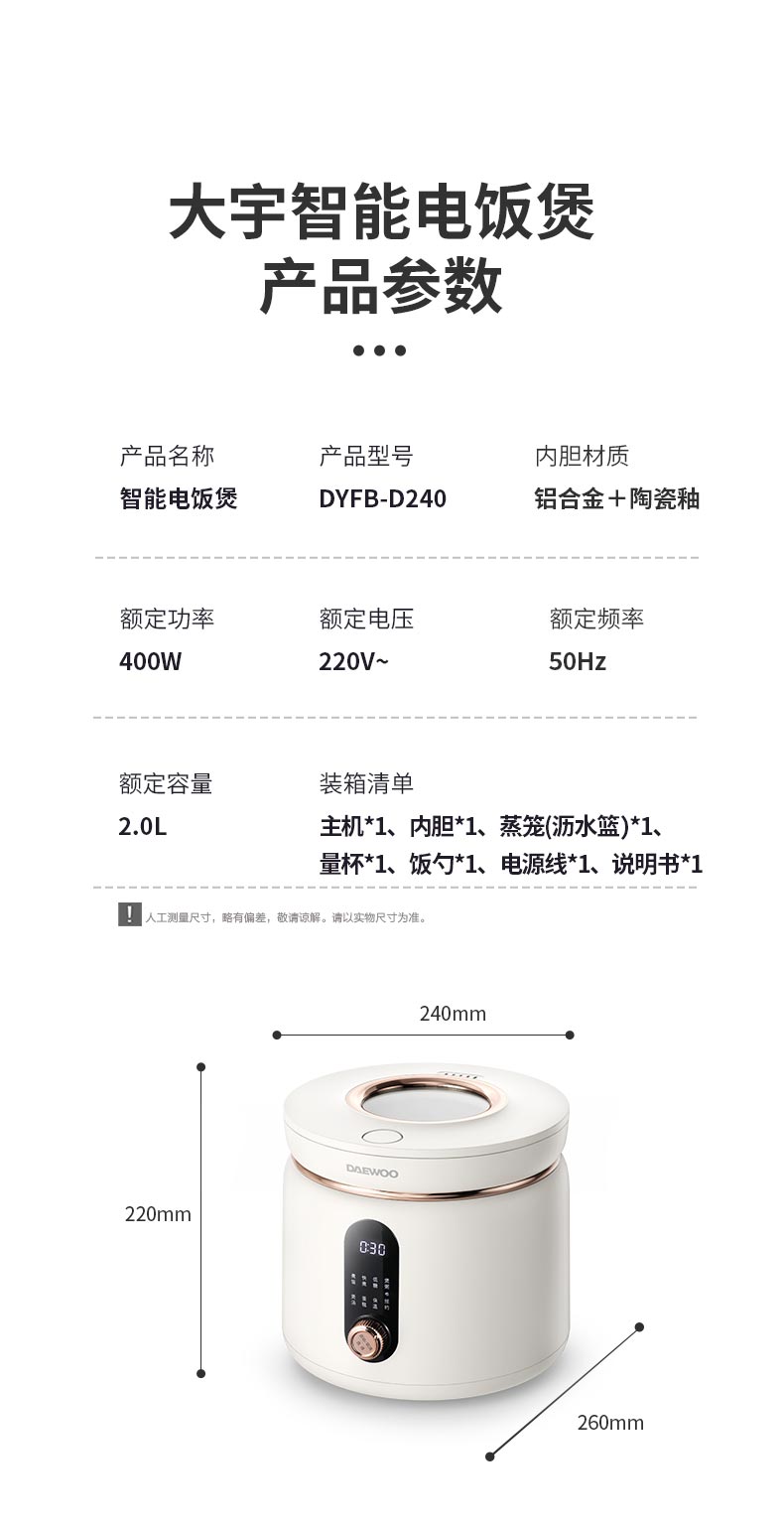 大宇低糖电饭煲DYFB-D240 流苏白(彩邮外)
