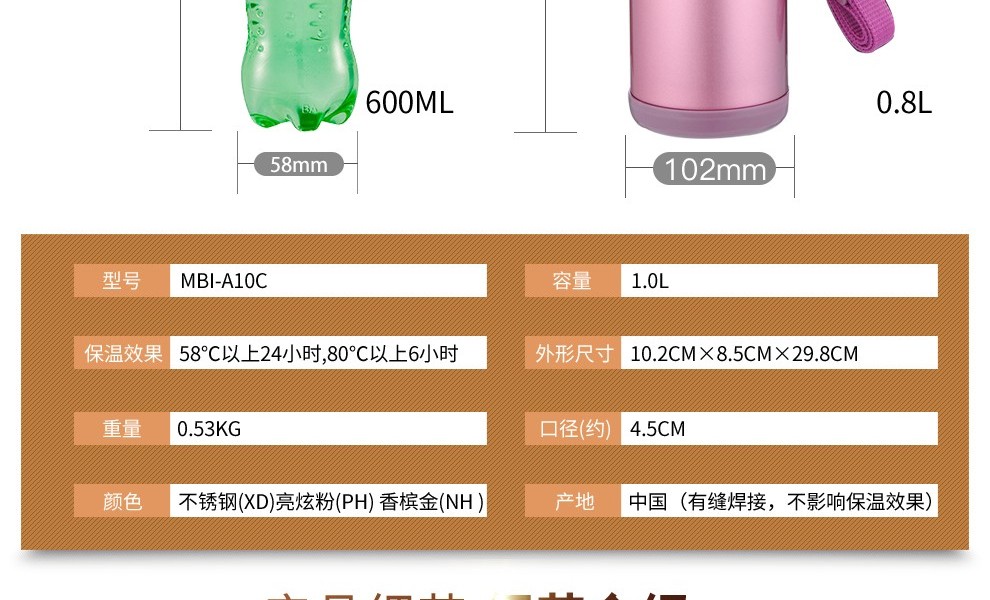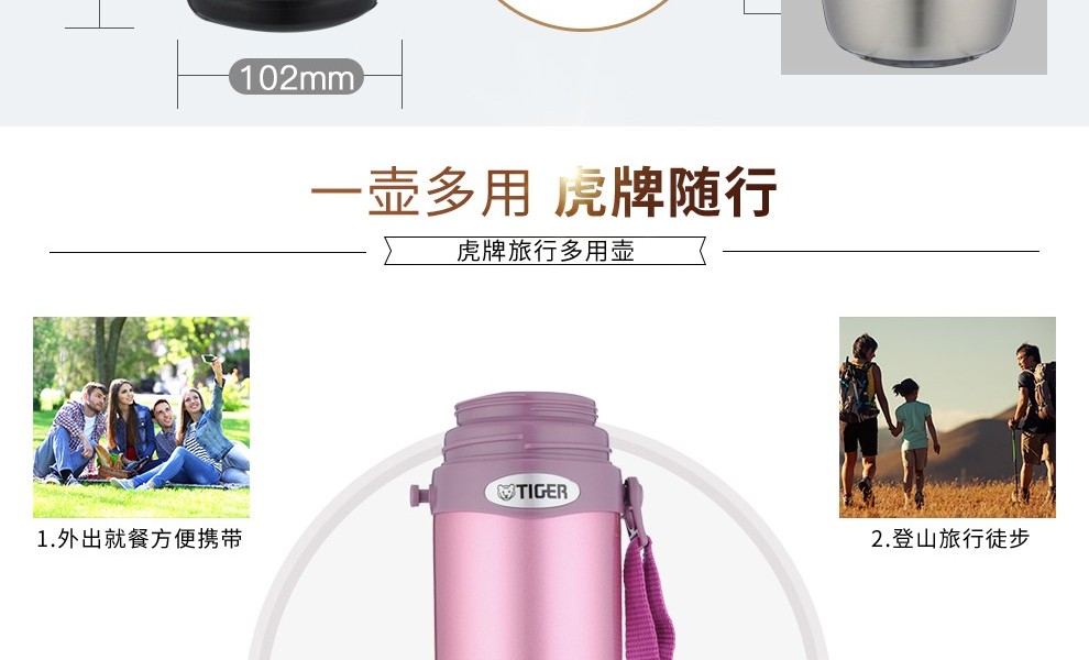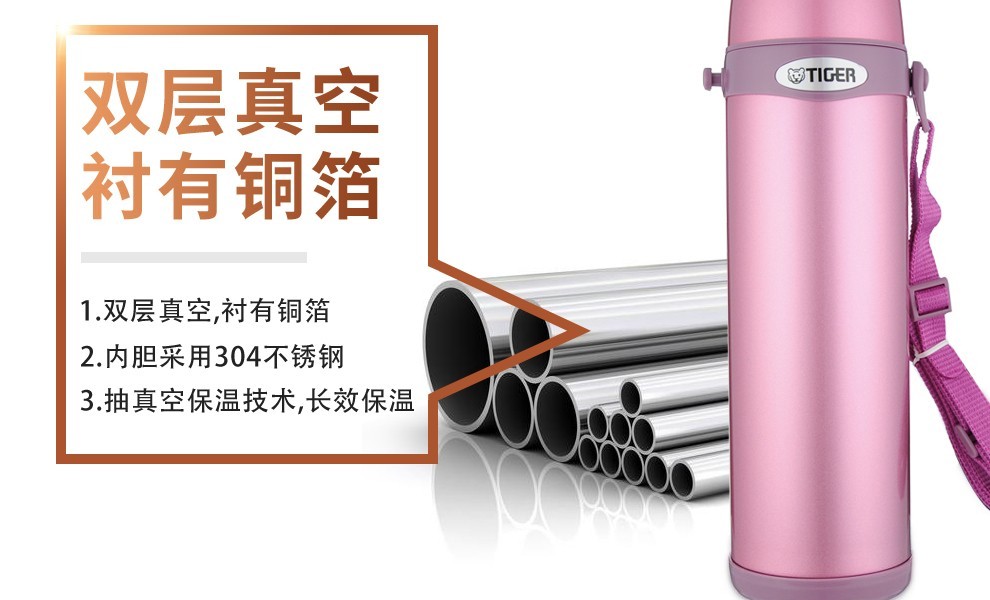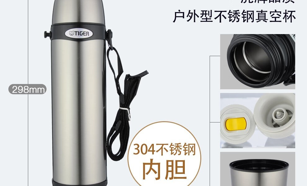 TIGER 虎牌 户外不锈钢真空运动大容量保温壶