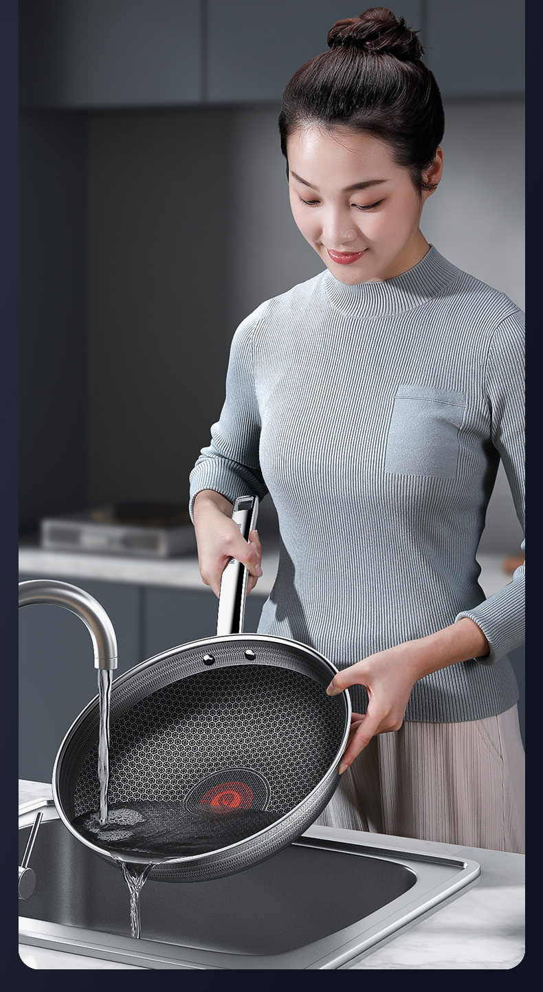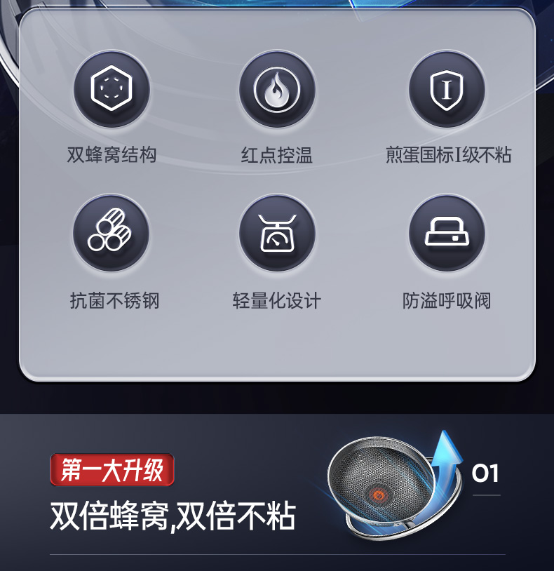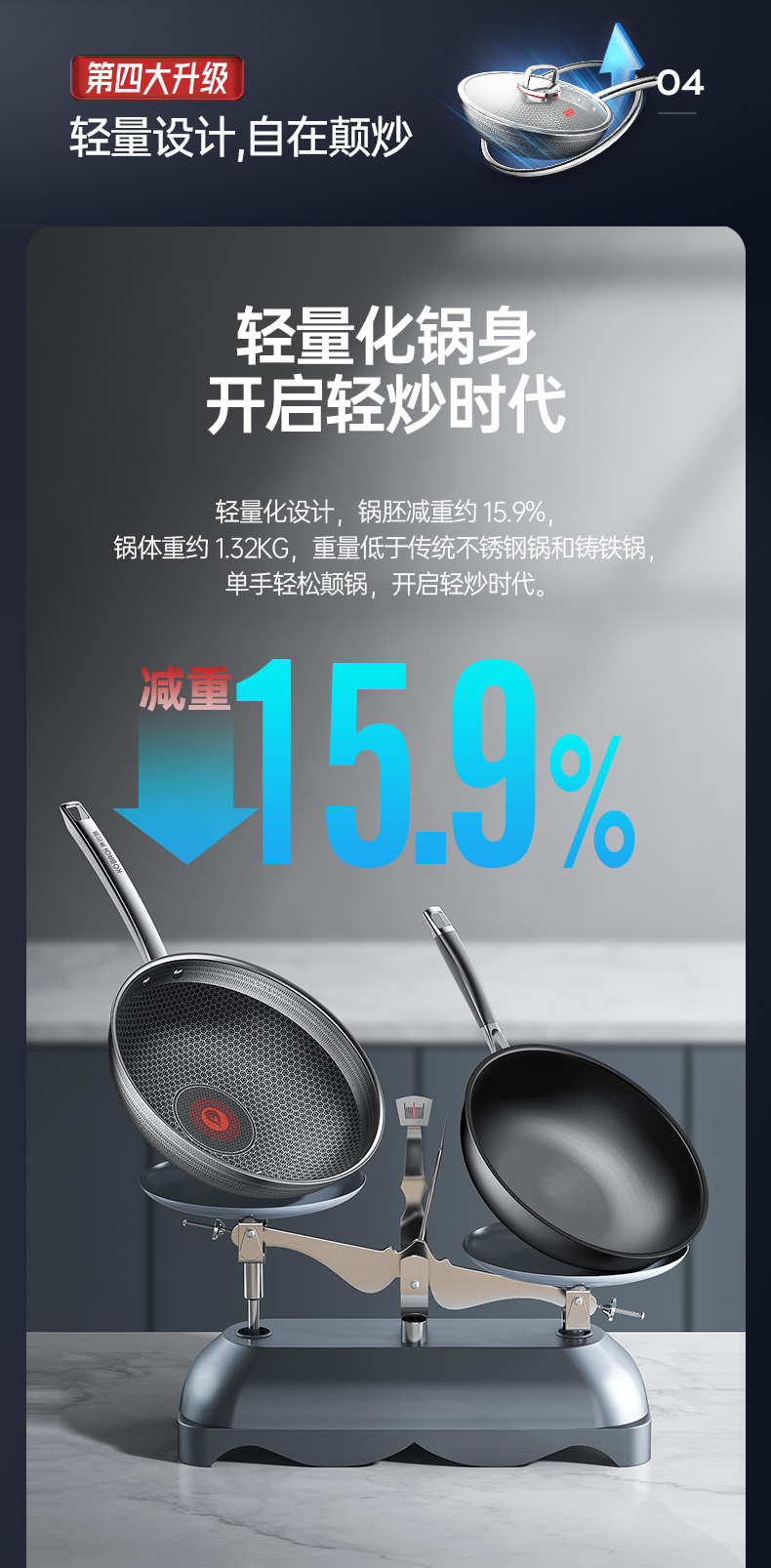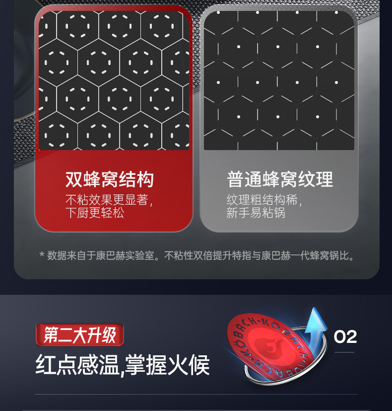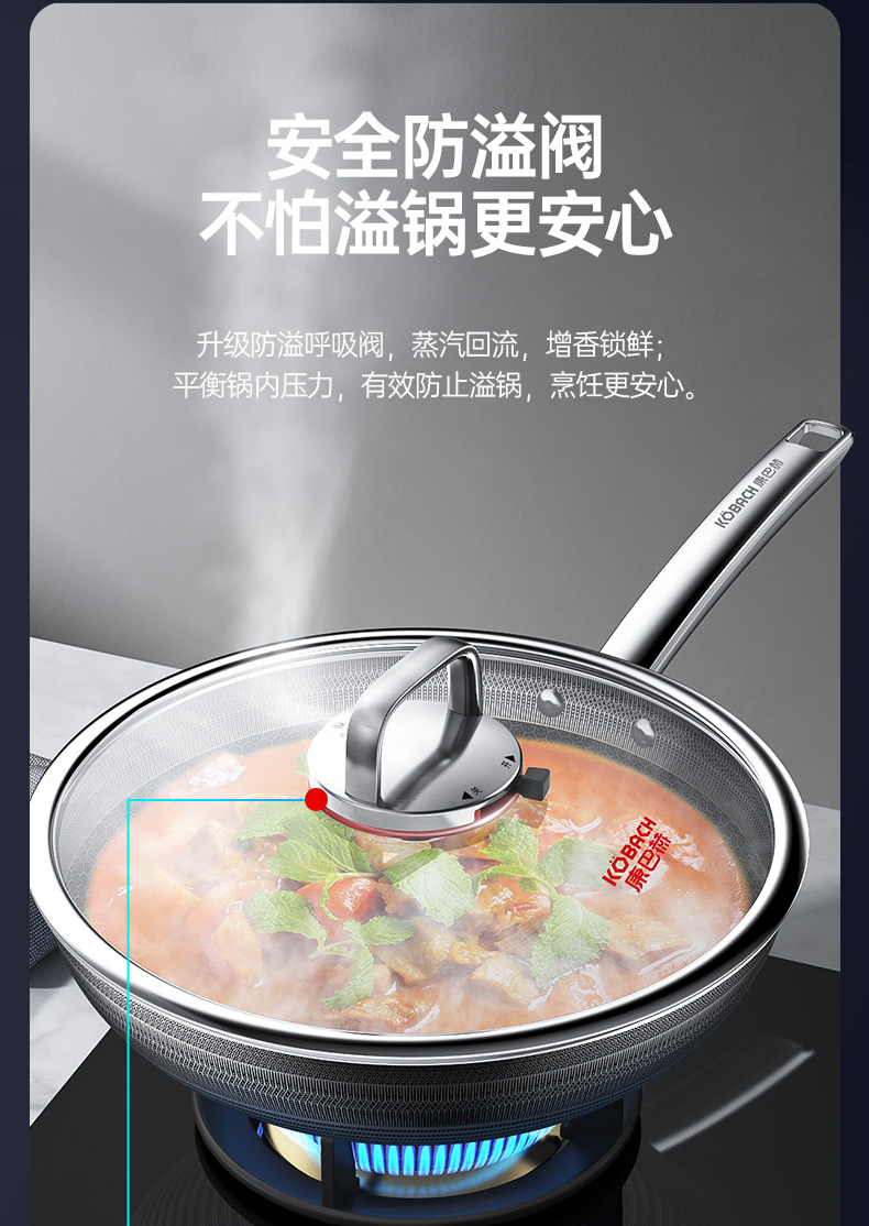【康巴赫】六代炒锅不粘锅抗菌不锈钢炒菜锅32cm双蜂窝平底锅红点电磁炉通用