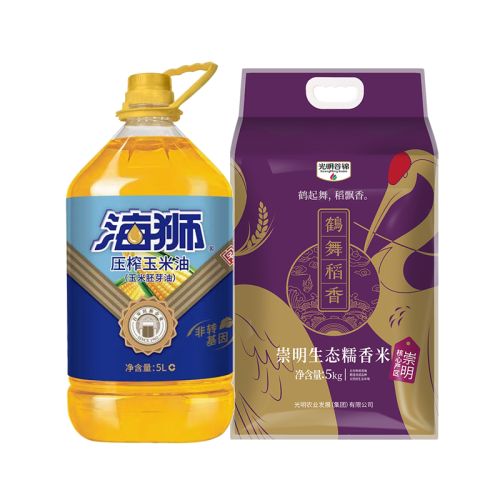 光明谷锦 鹤舞稻香崇明生态糯香米 5kg+海狮 压榨玉米油5L组合