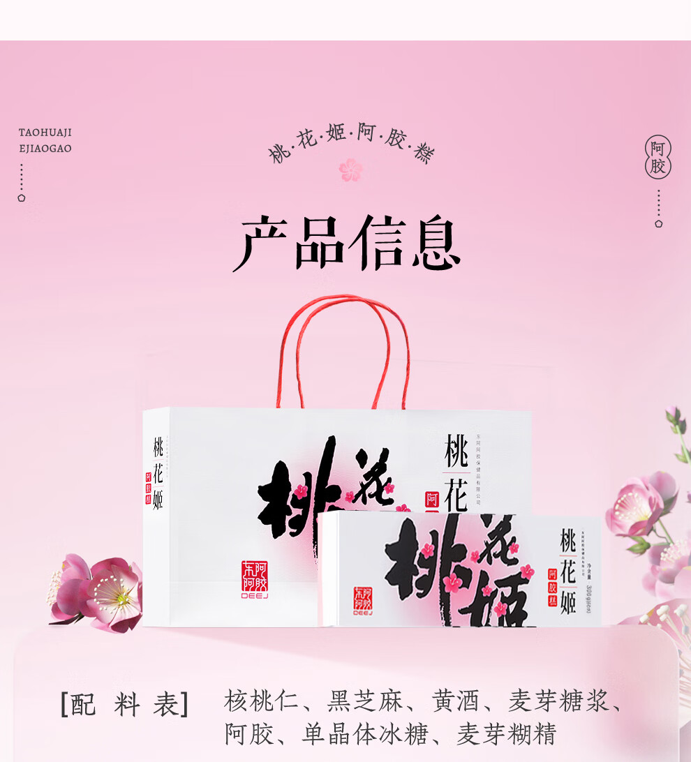 东阿阿胶桃花姬阿胶糕300g即食阿胶糕礼盒营养品补品倪妮推荐