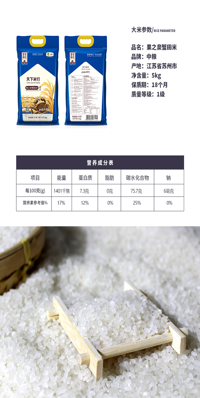 活动参与奖 套餐九:中粮皇家粮仓蟹田米5kg+贝欧庄园亚麻籽油500ml