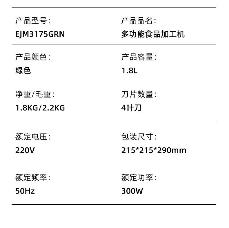 活动参与奖 套餐四十二:乐扣乐扣绞肉机EJM3175GRN
