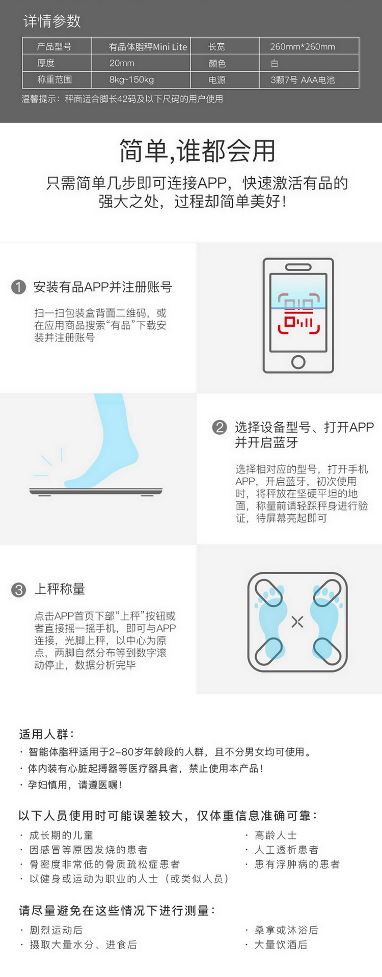活动参与奖 套餐四十三:有品(PICOOC)-智能体脂秤 mini lite+弹力圈(套装)