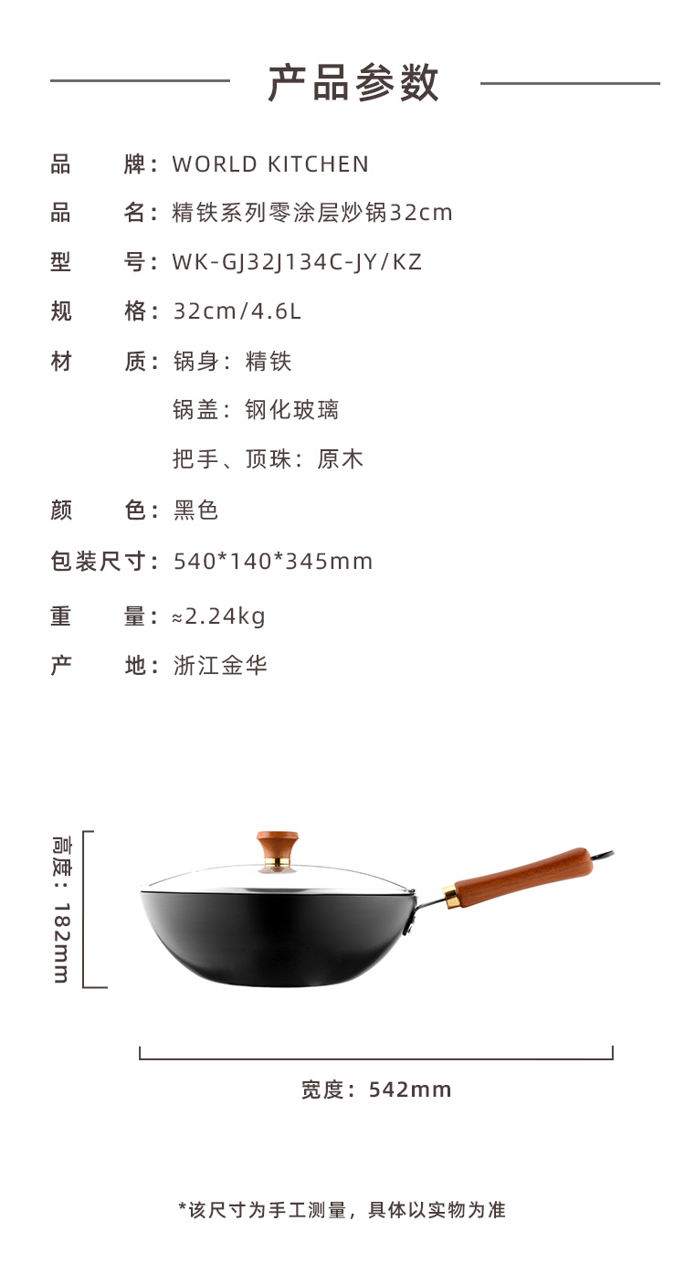 精铁系列零涂层炒锅32CM