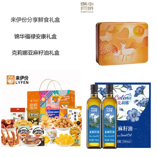 来伊份分享鲜食+锦华福禄安康礼盒+克莉娜亚麻籽油750ML*2礼盒