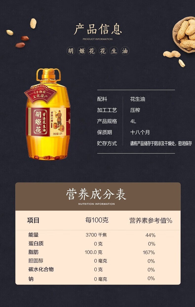 胡姬花金衣玉食古法花生油5L