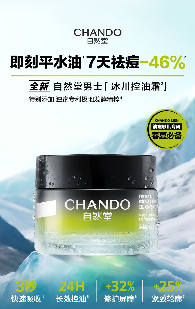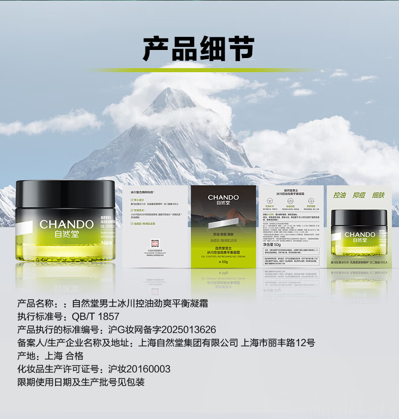 自然堂男士冰川控油劲爽平衡凝霜50g美妆护肤面霜