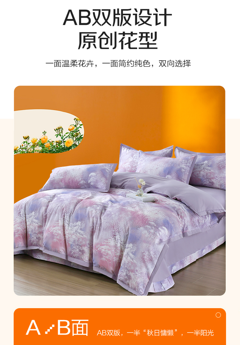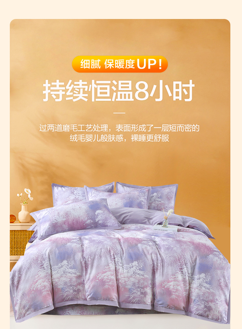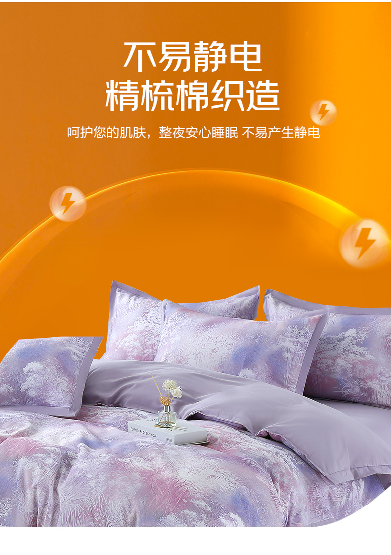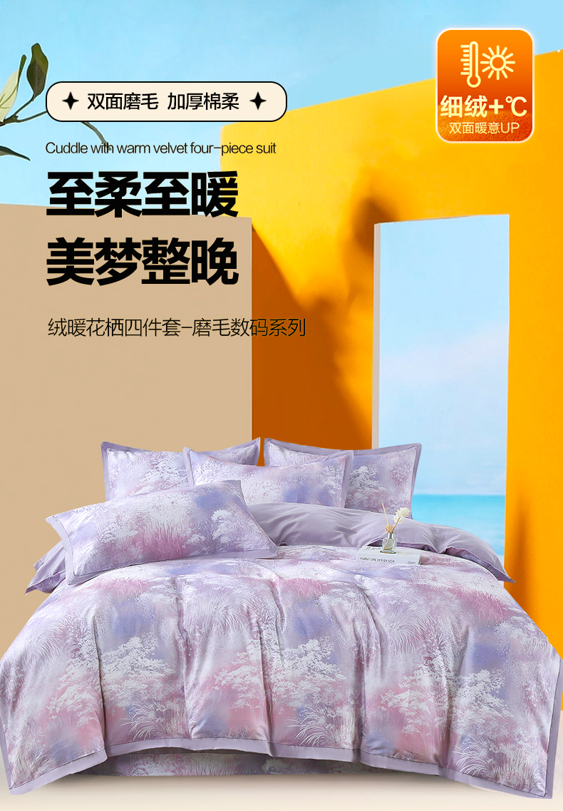 恒源祥集团彩羊家纺全棉数码磨毛四件套时光煮雨 紫