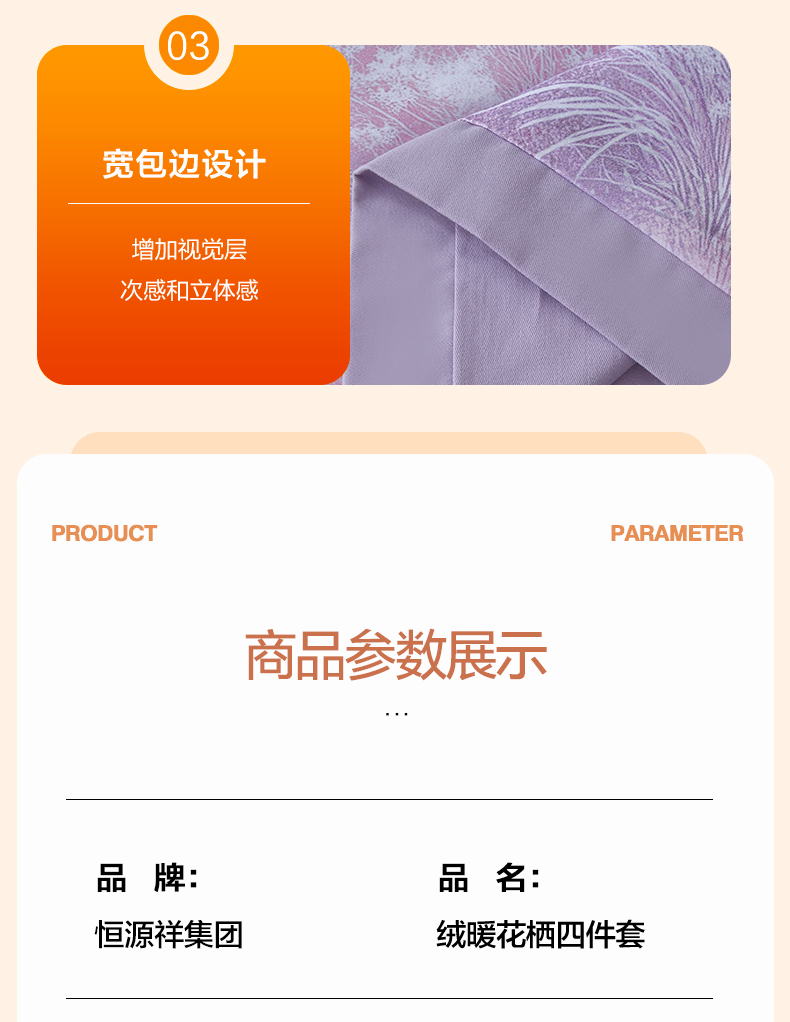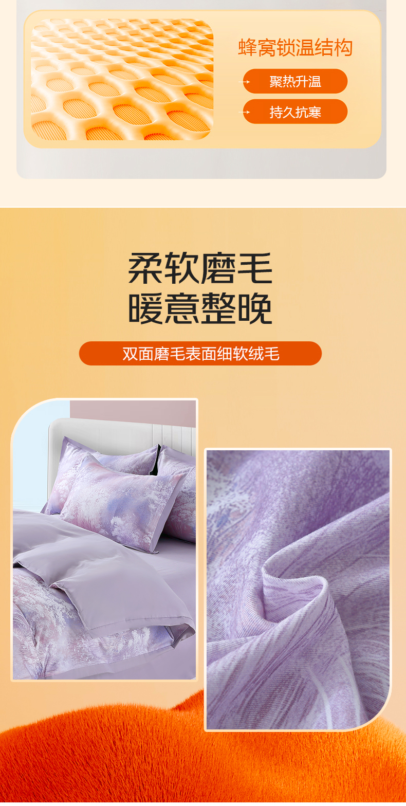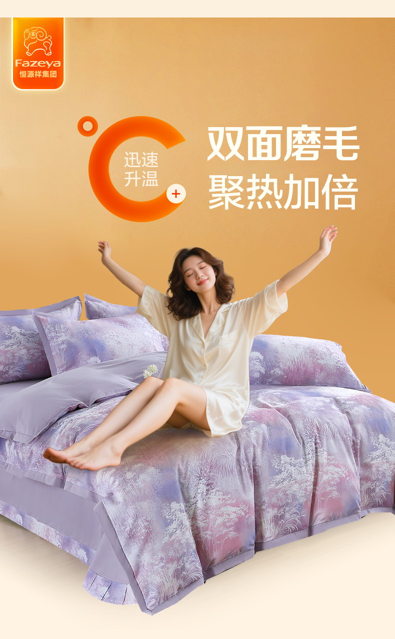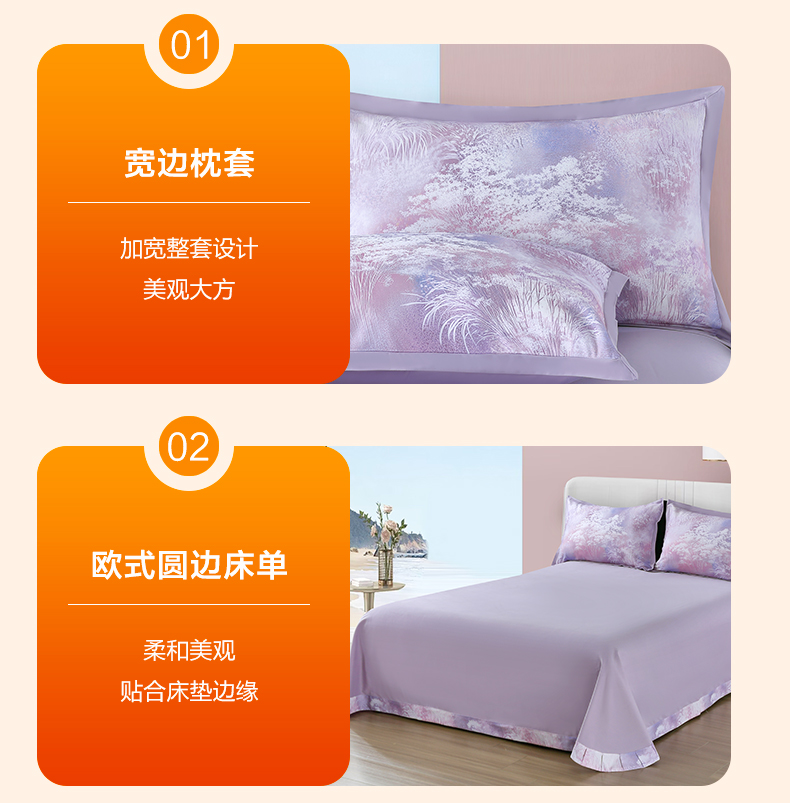 恒源祥集团彩羊家纺全棉数码磨毛四件套时光煮雨 紫