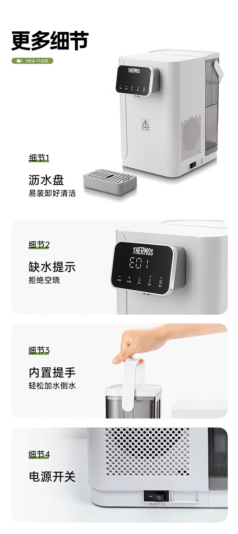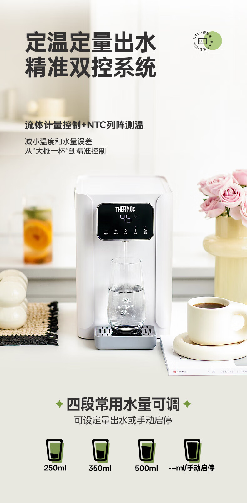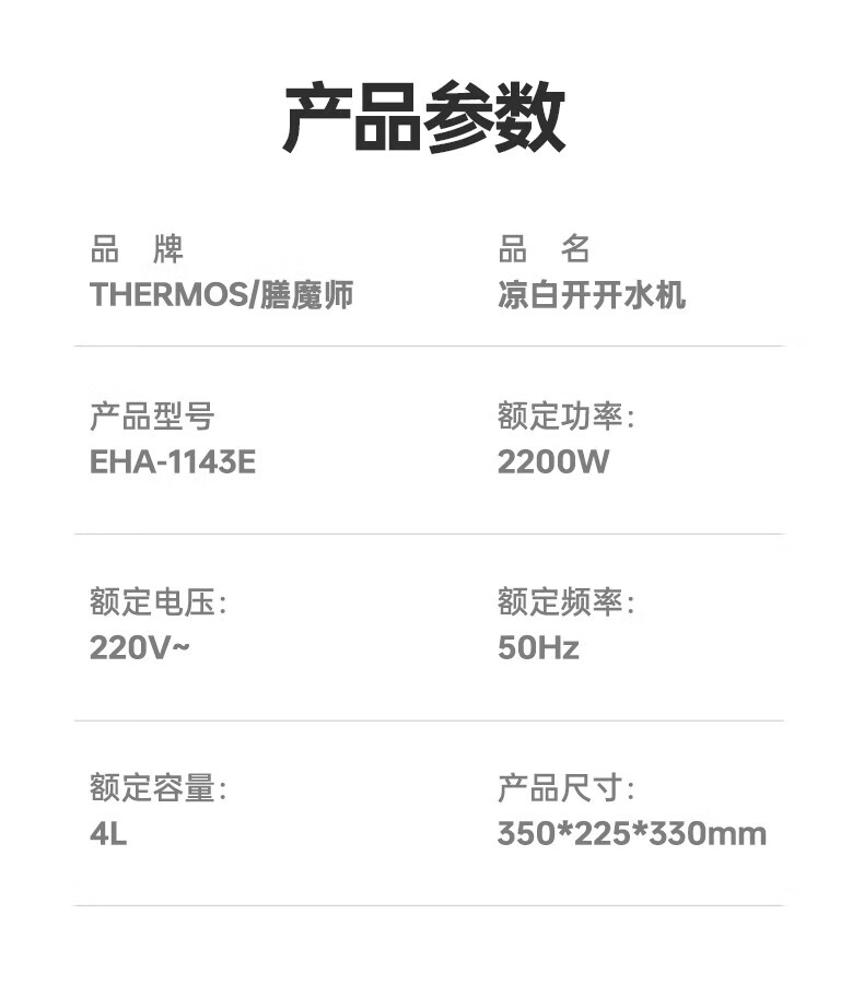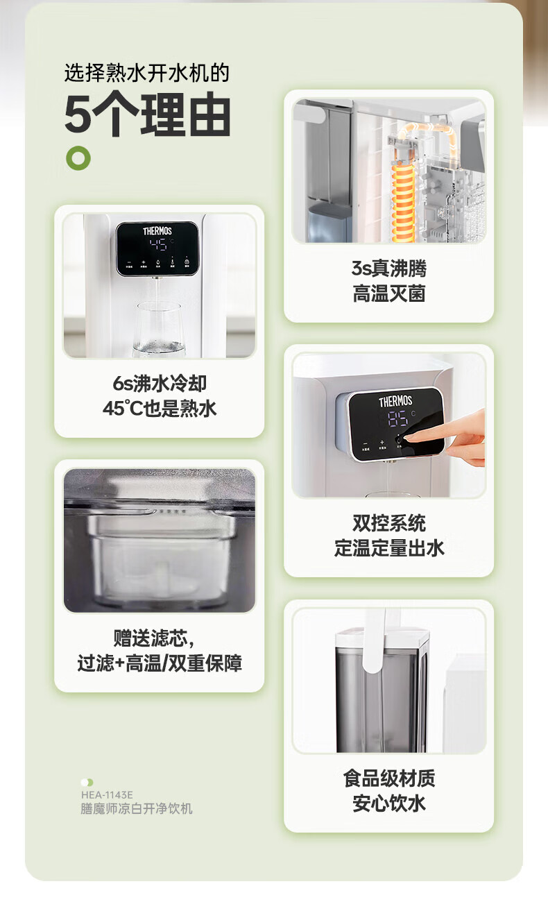 膳魔师(THERMOS)台式多功能制冷/即热式饮水机1143E 皓月白