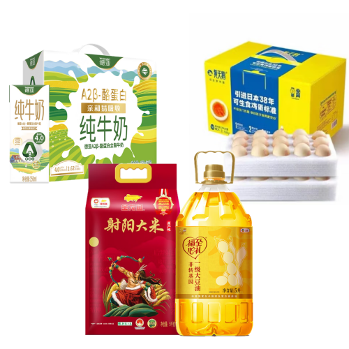 黄天鹅可生食鸡蛋24枚/盒 德亚A2β-酪蛋白全脂牛奶礼盒250ML*10+福临门福至心礼一级大豆油5L非转基因 金龙鱼射阳大米5kg