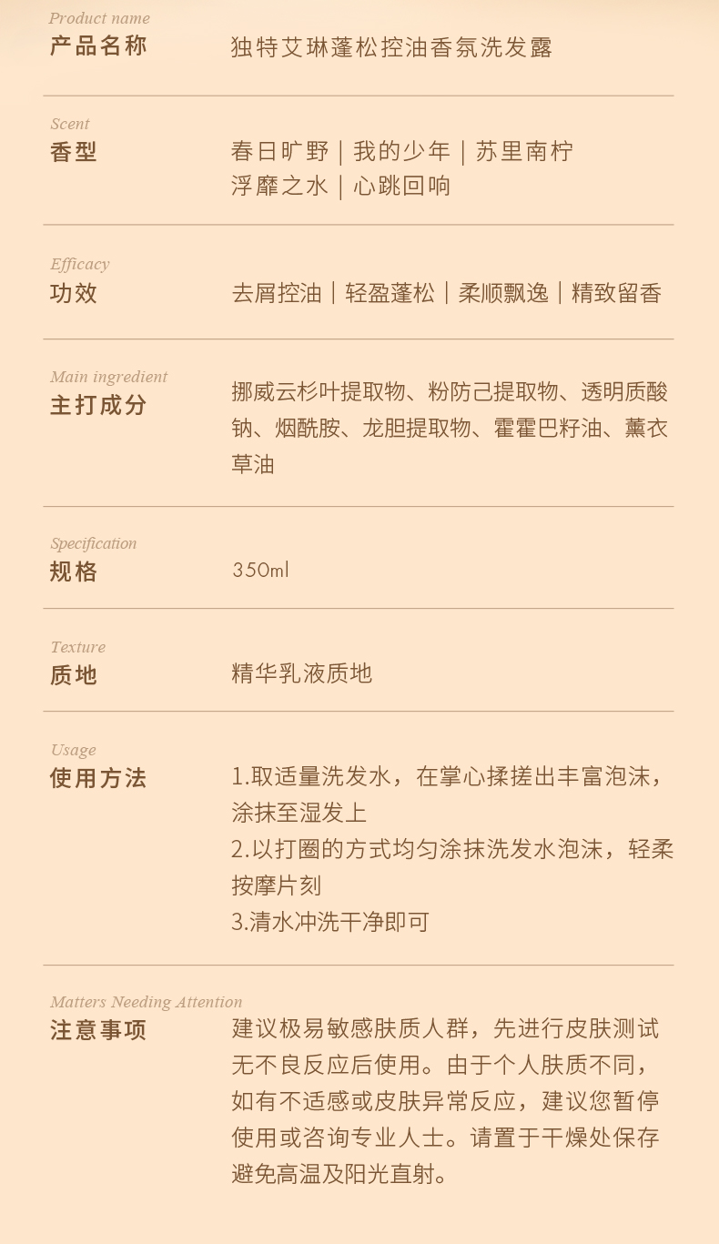 独特艾琳浮靡之水洗发露+护发素