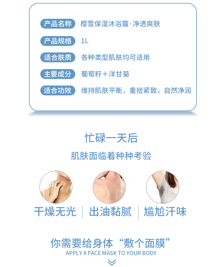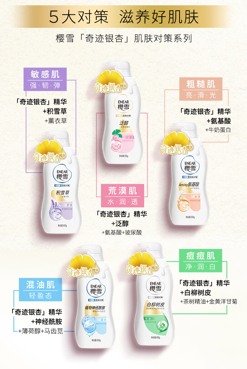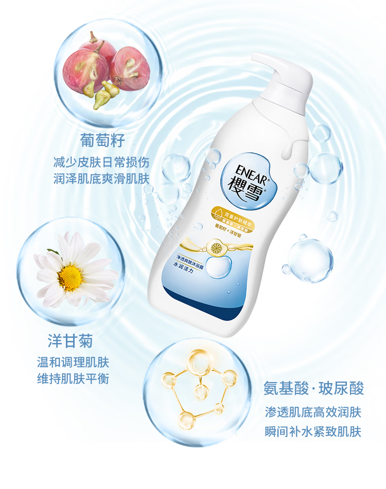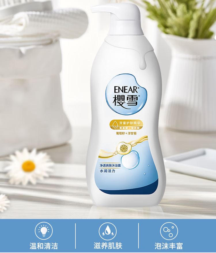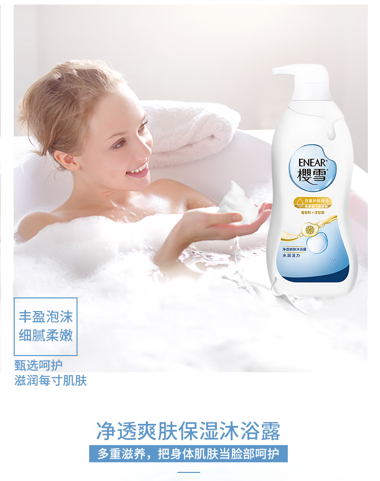 樱雪(ENEAR)保湿沐浴露 氨基酸玻尿酸净透爽肤沐浴乳 1000ml 持久留香