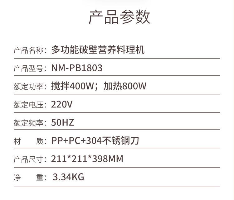 方案三:多功能破壁营养料理机NM-PB1803