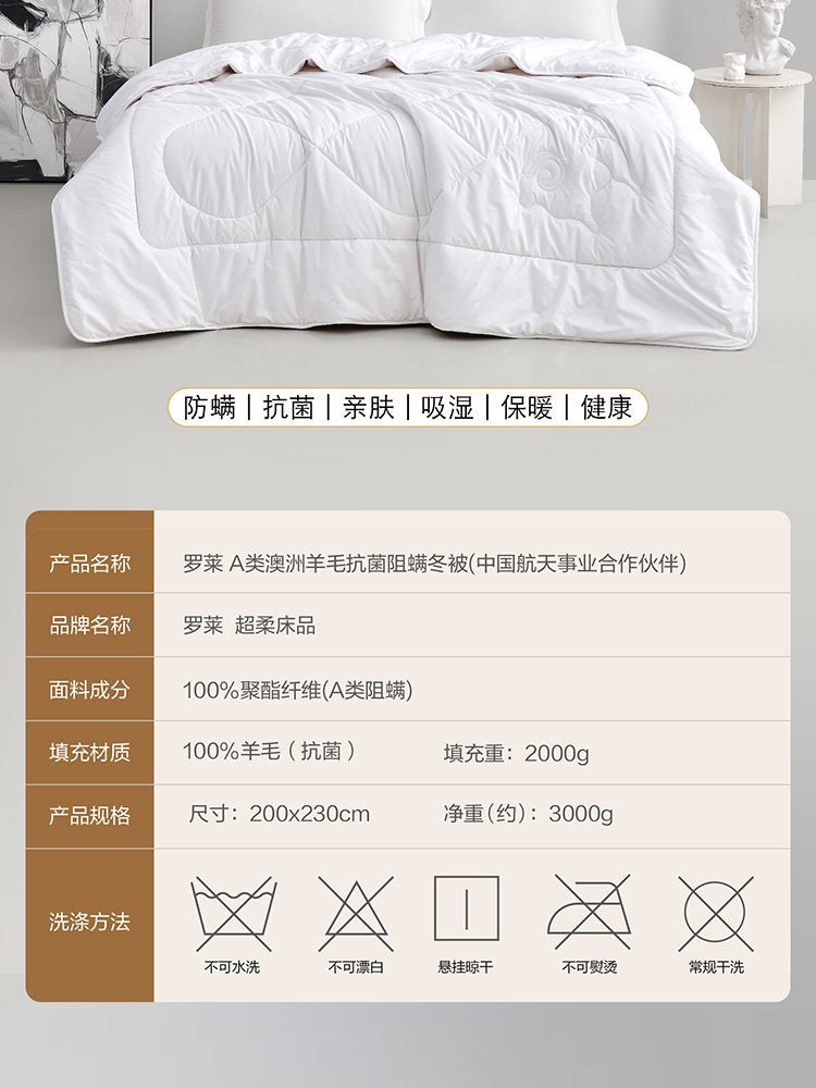 罗莱 A类澳洲羊毛抗菌阻螨冬被+ 白猫净界全效礼盒