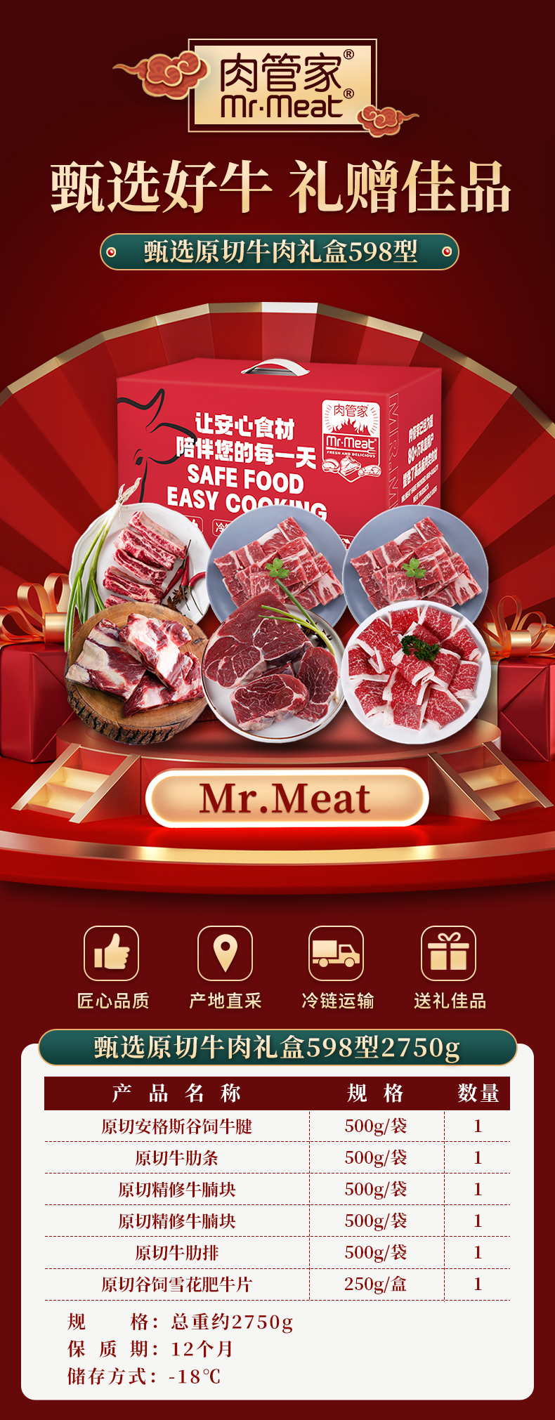 肉管家Mr.Meat 甄选原切牛肉礼盒598型 2750g