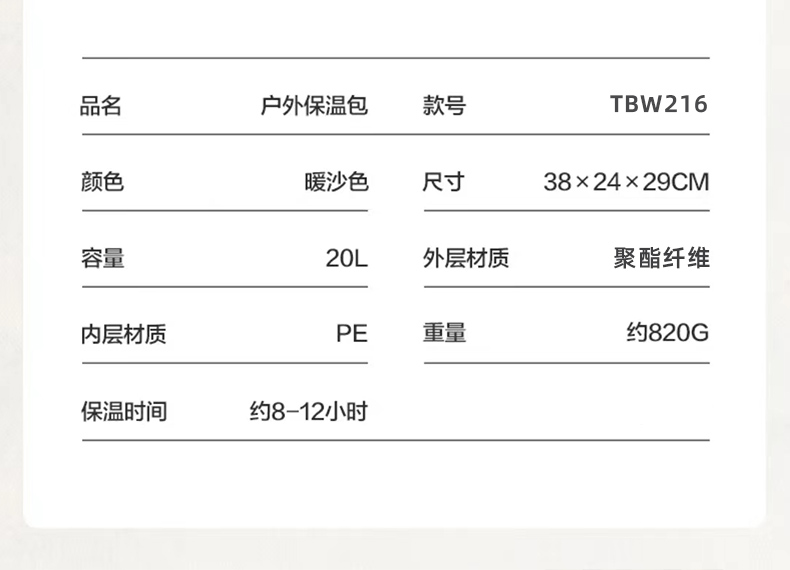 "途帮(TOBOOG)大容量保温包TBW216 暖沙色"