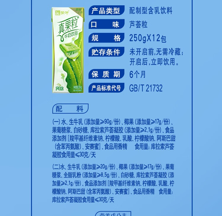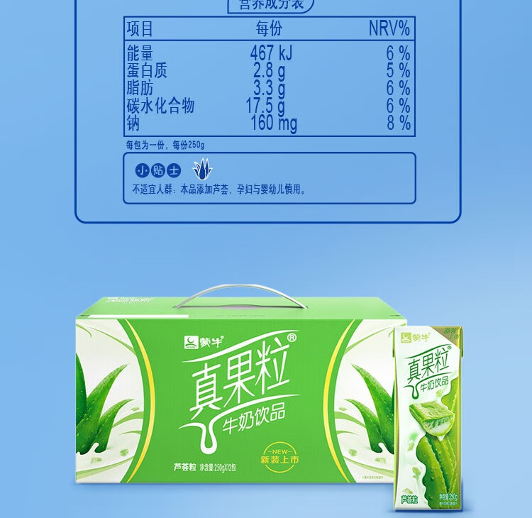 蒙牛 真果粒芦荟果粒牛奶饮品250ml*12瓶/箱