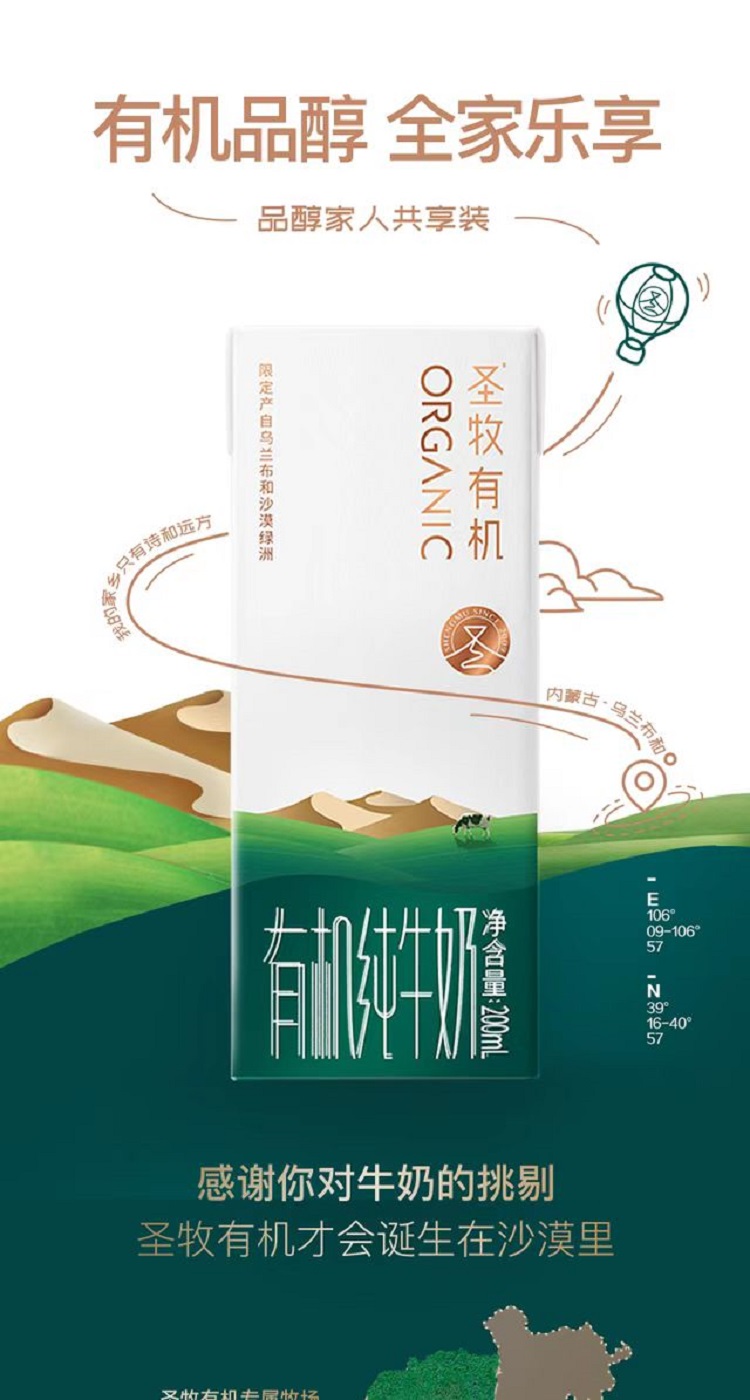 蒙牛 圣牧全程有机纯牛奶200ml*10瓶/箱*3箱