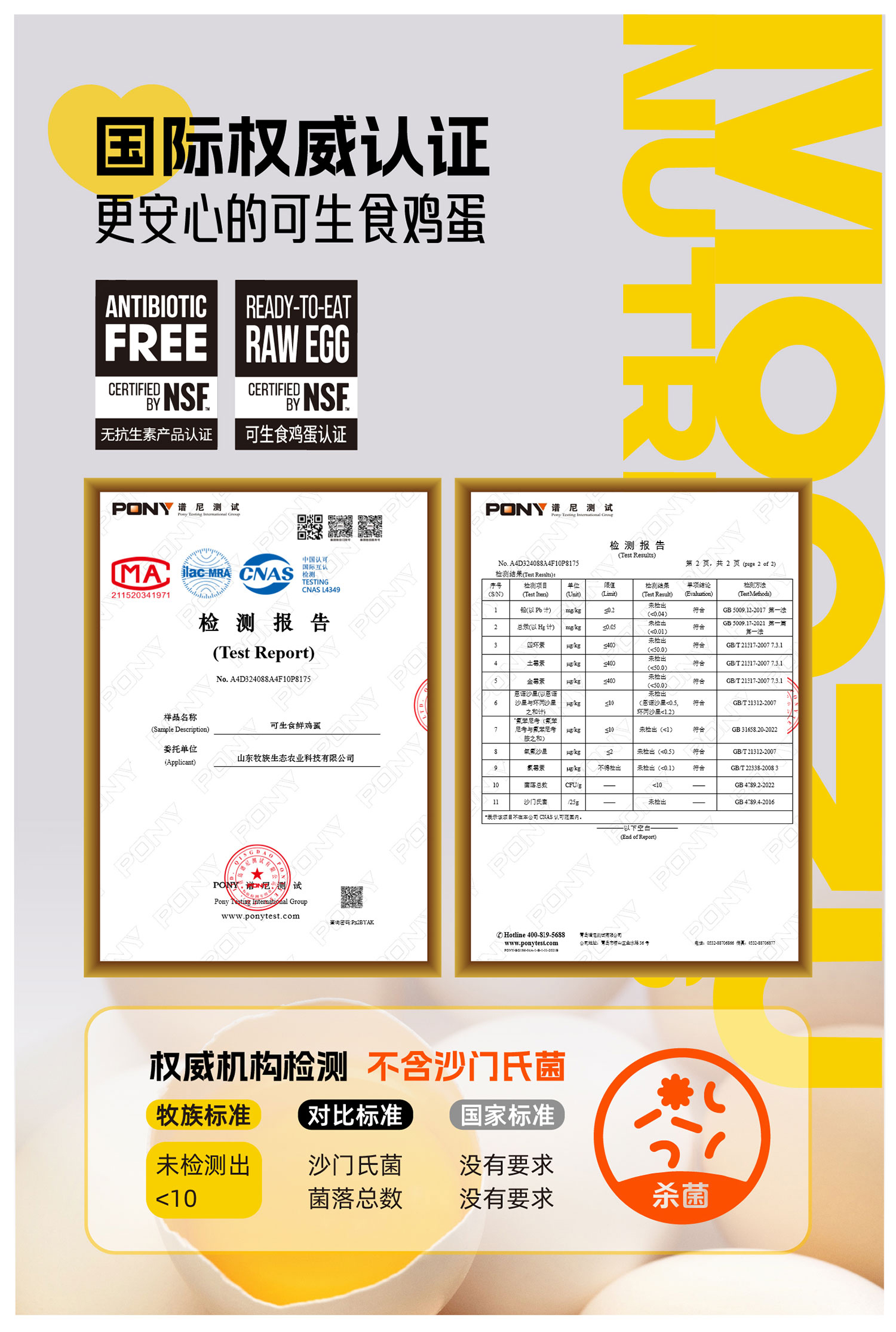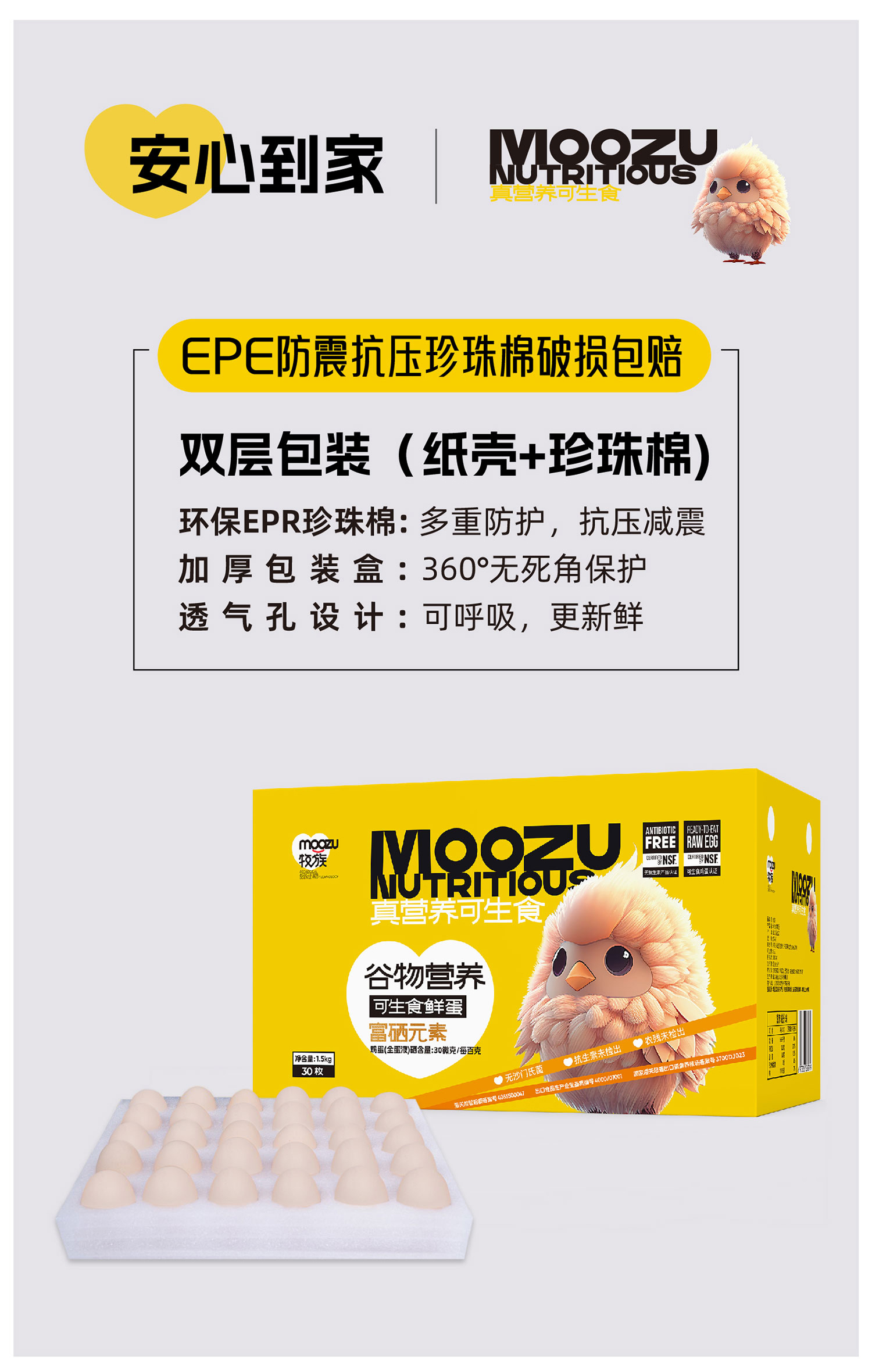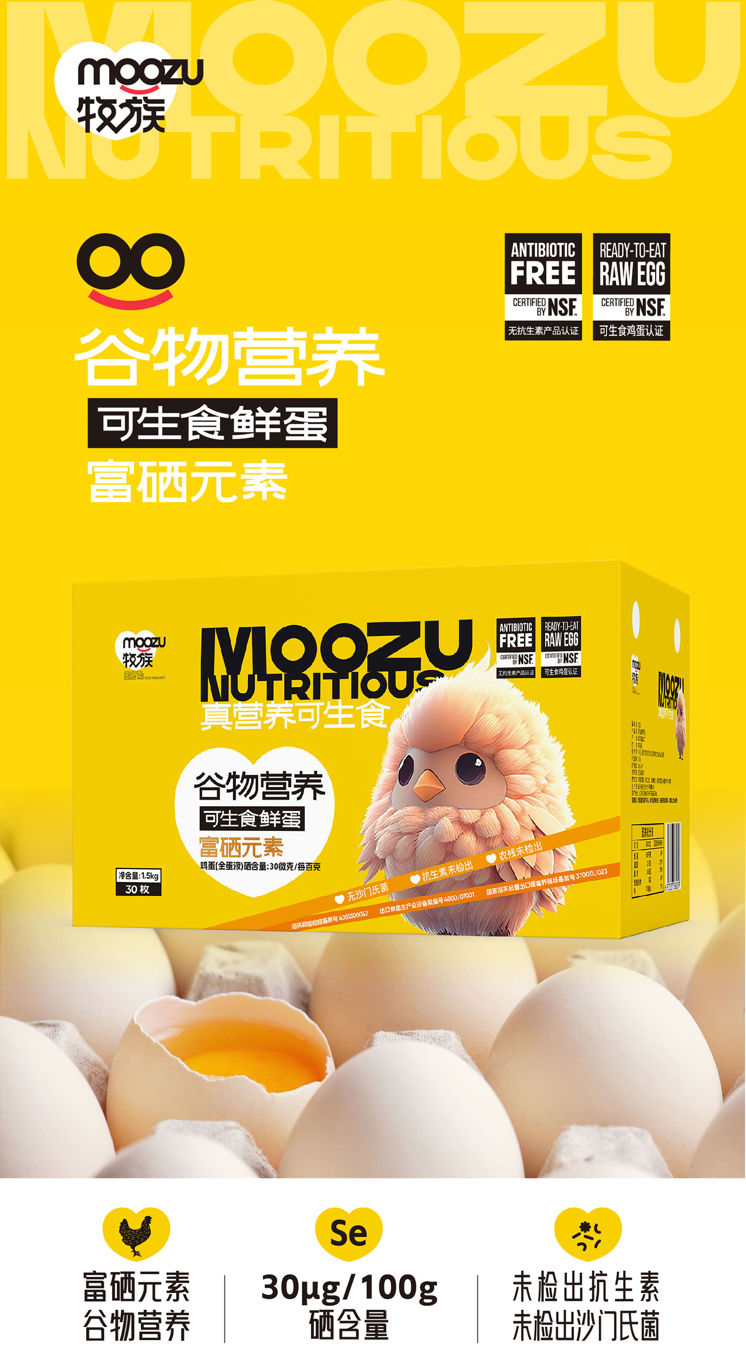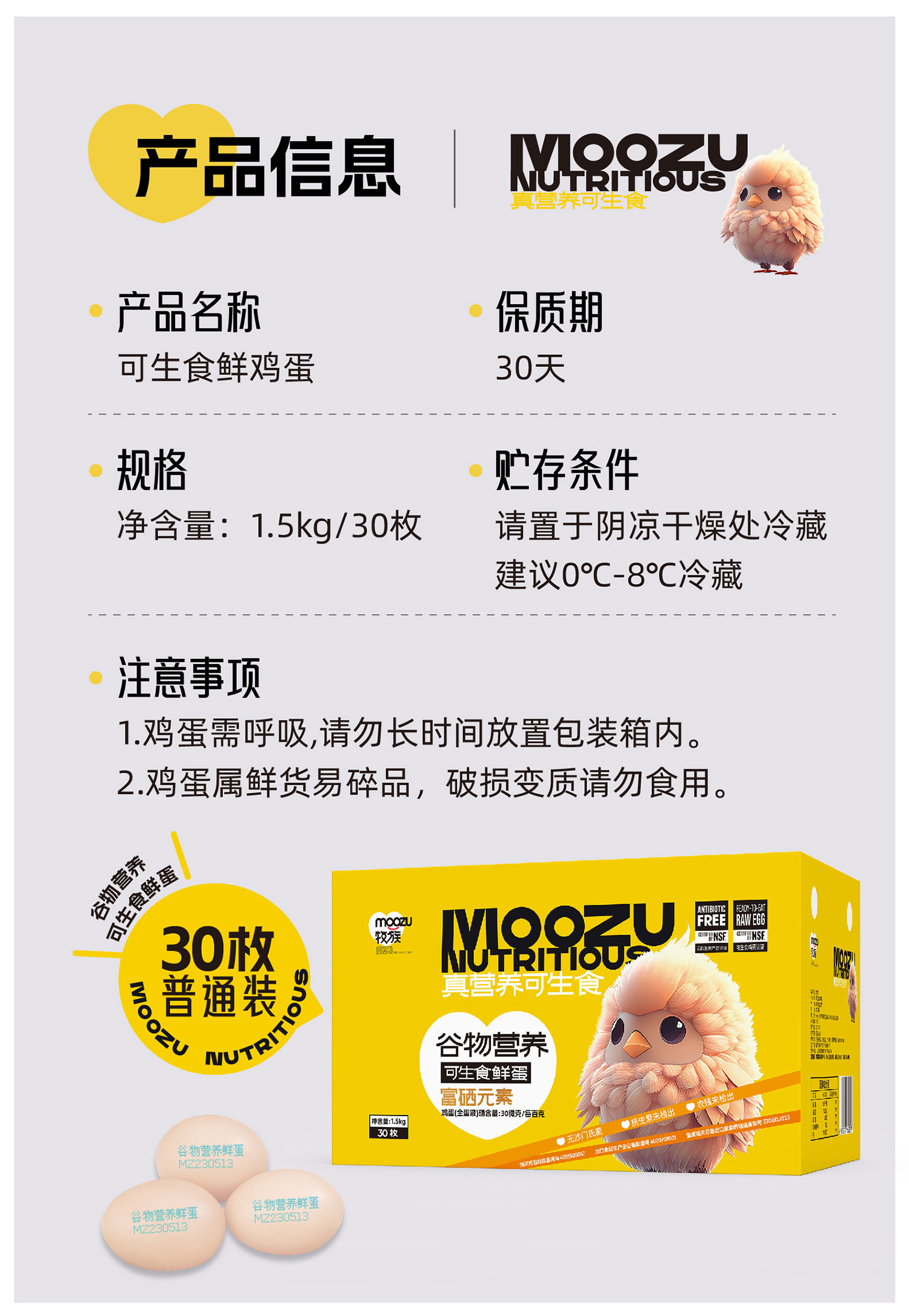 牧族 可生食鸡蛋 NSF双认证 无抗生素 无菌沙门氏菌 新鲜鸡蛋 【谷物富硒】可生食-30枚1.5kg