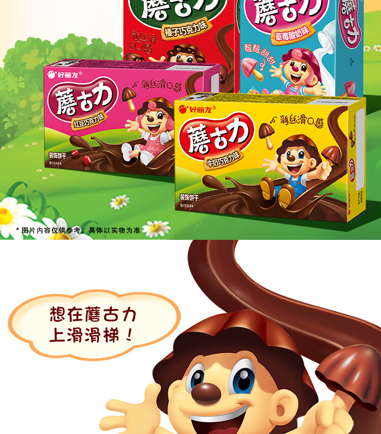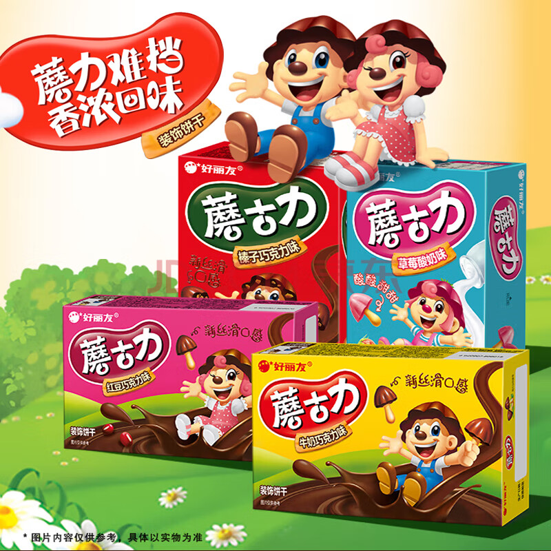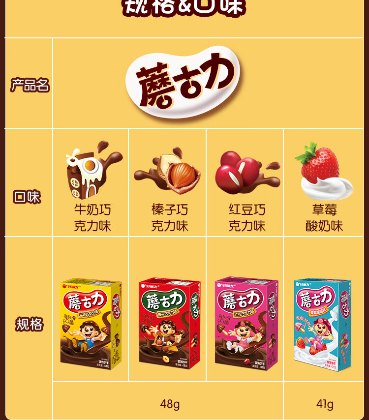 好丽友(orion)休闲零食 巧克力味饼干 蘑古力草莓酸奶味41g/盒