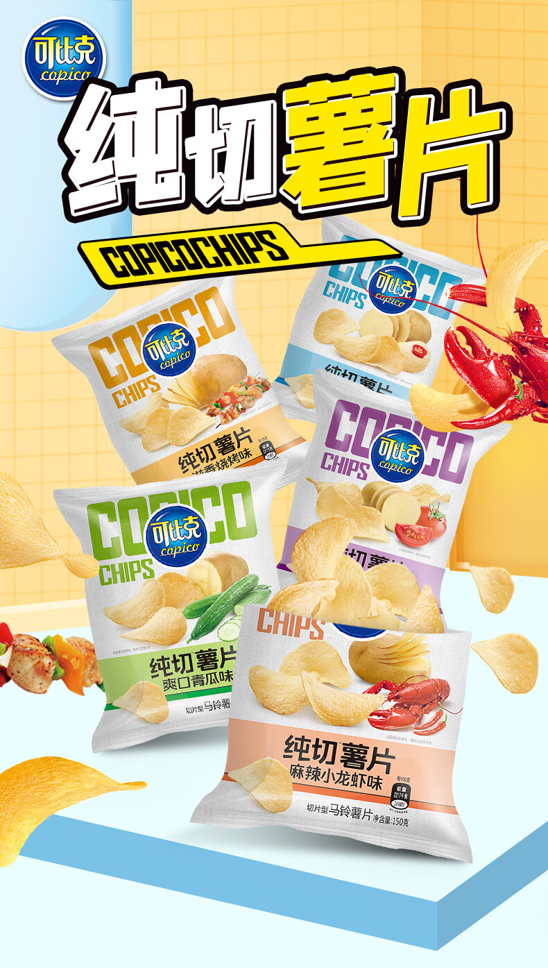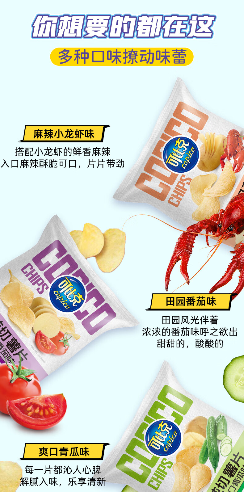 可比克纯切薯片麻辣小龙虾味150g办公室休闲膨化零食