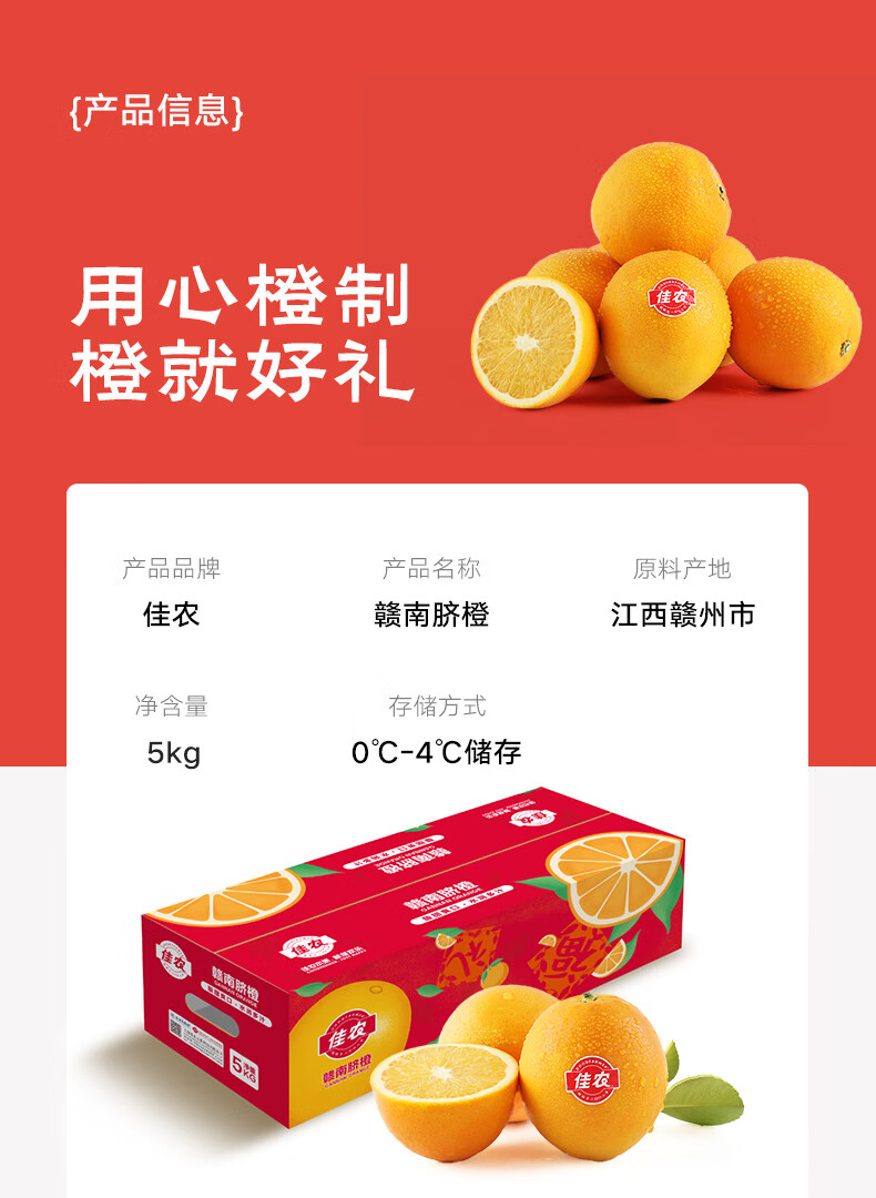 佳农 赣南脐橙5kg装 单果200g-230g 生鲜水果年货礼盒