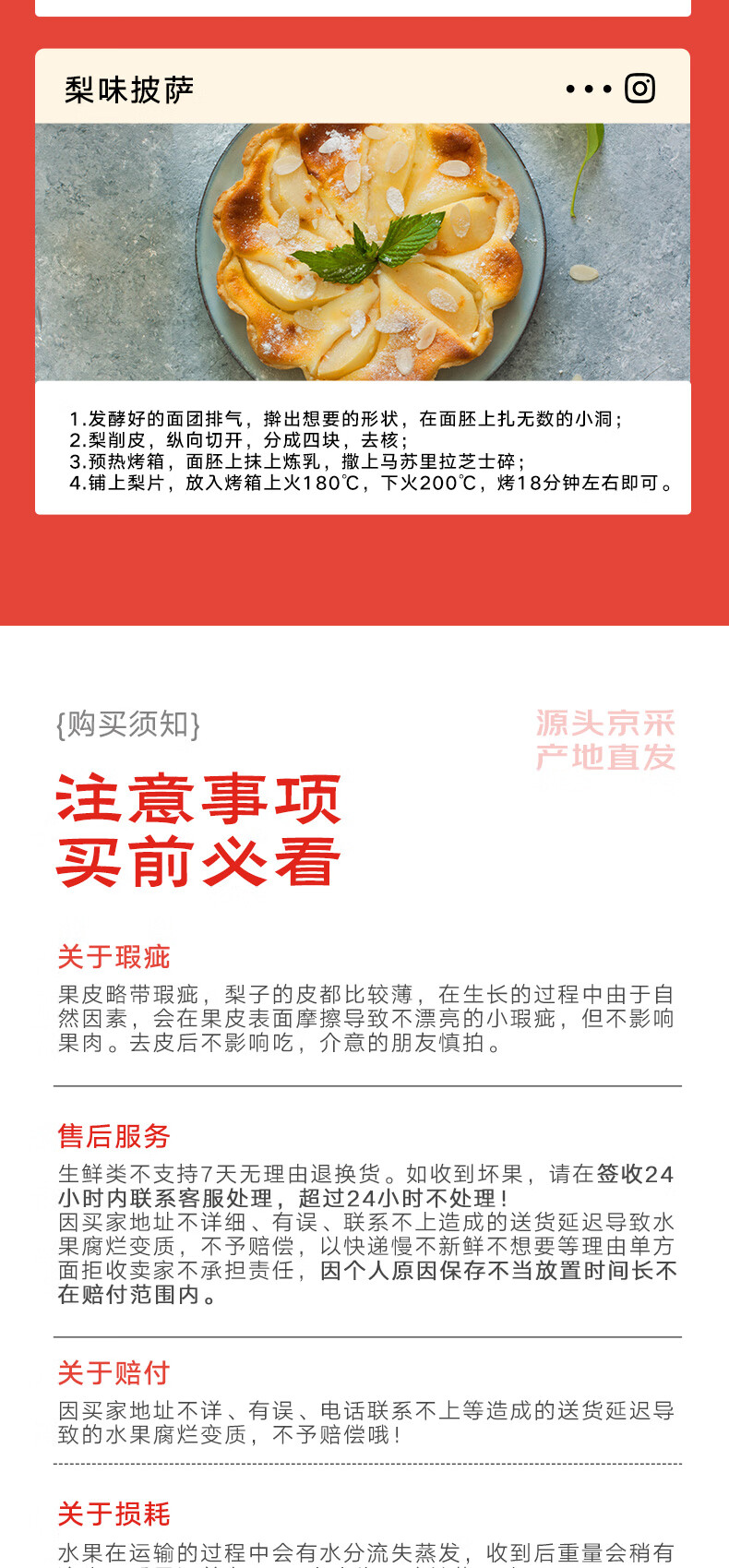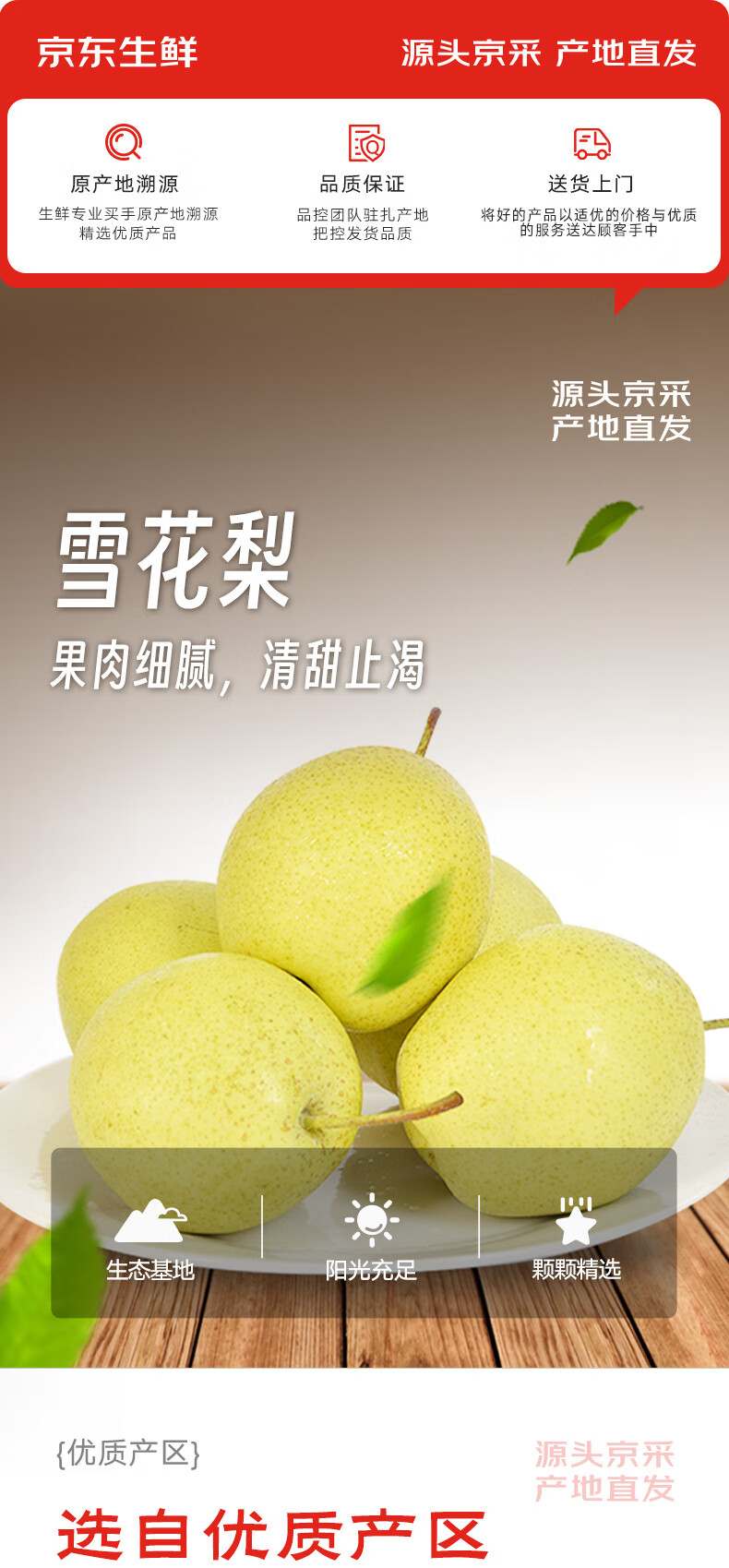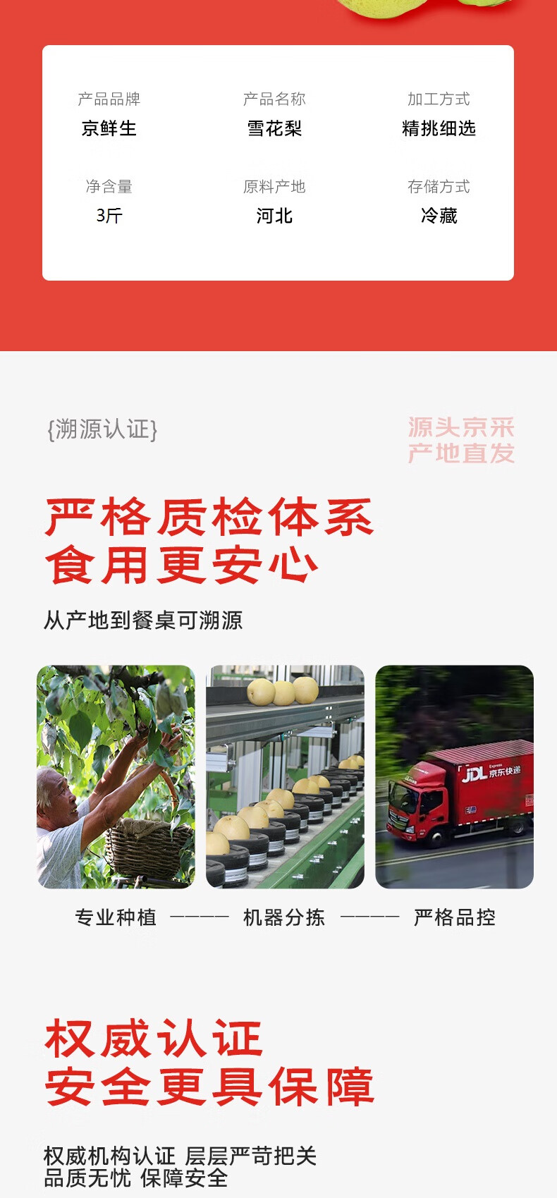 京鲜生 长城河北雪花梨 净重3斤 生鲜水果 源头直发 包邮