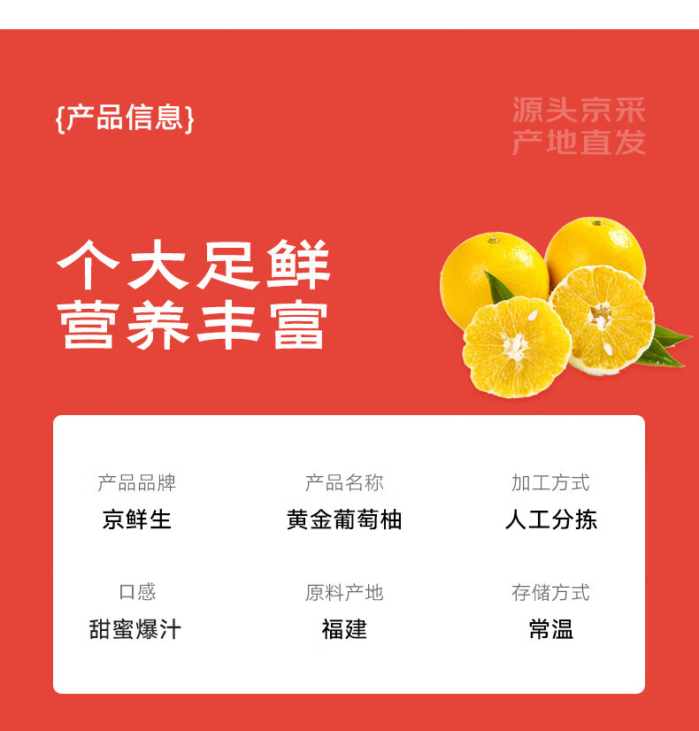 京鲜生 福建黄金葡萄柚 8.5斤装 单果400g起 生鲜水果柚子 源头直发包邮