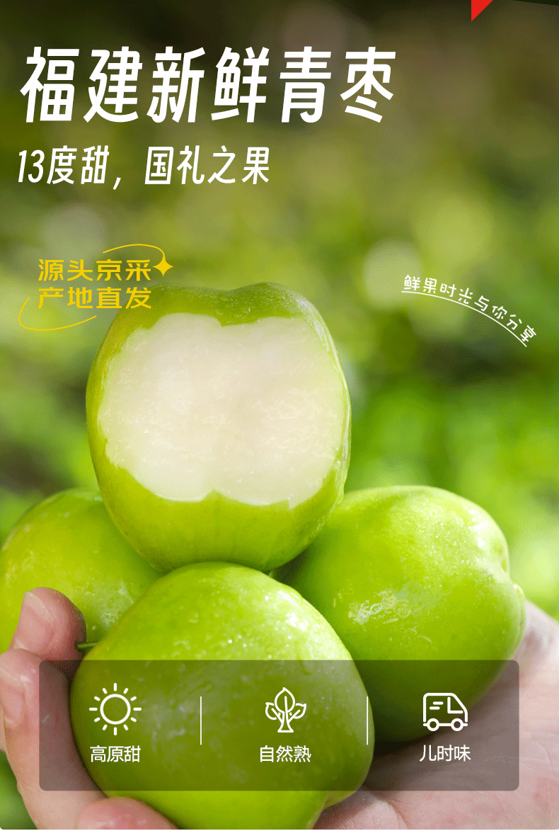 京鲜生福建贵妃枣 5斤单果50-80g 青枣 脆枣 应季水果 源头直发