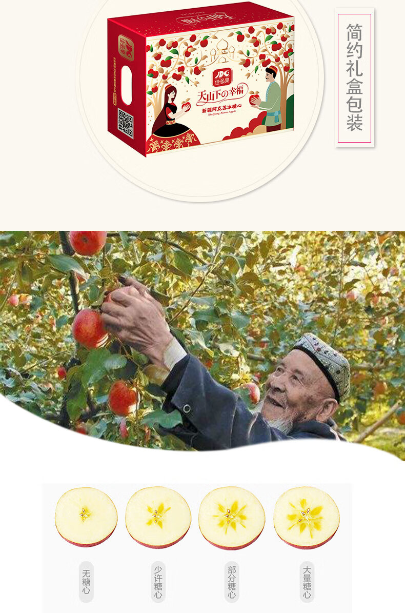 京鲜生佳多果新疆阿克苏苹果 超大果4kg果径90#以上 水果新年礼盒