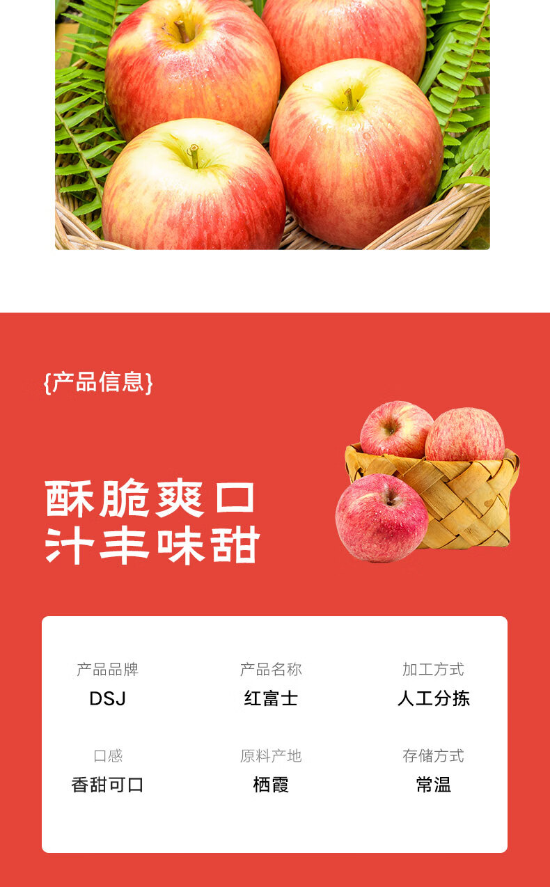DSJ栖霞红富士苹果5斤礼盒装 脆甜多汁75mm--80mm