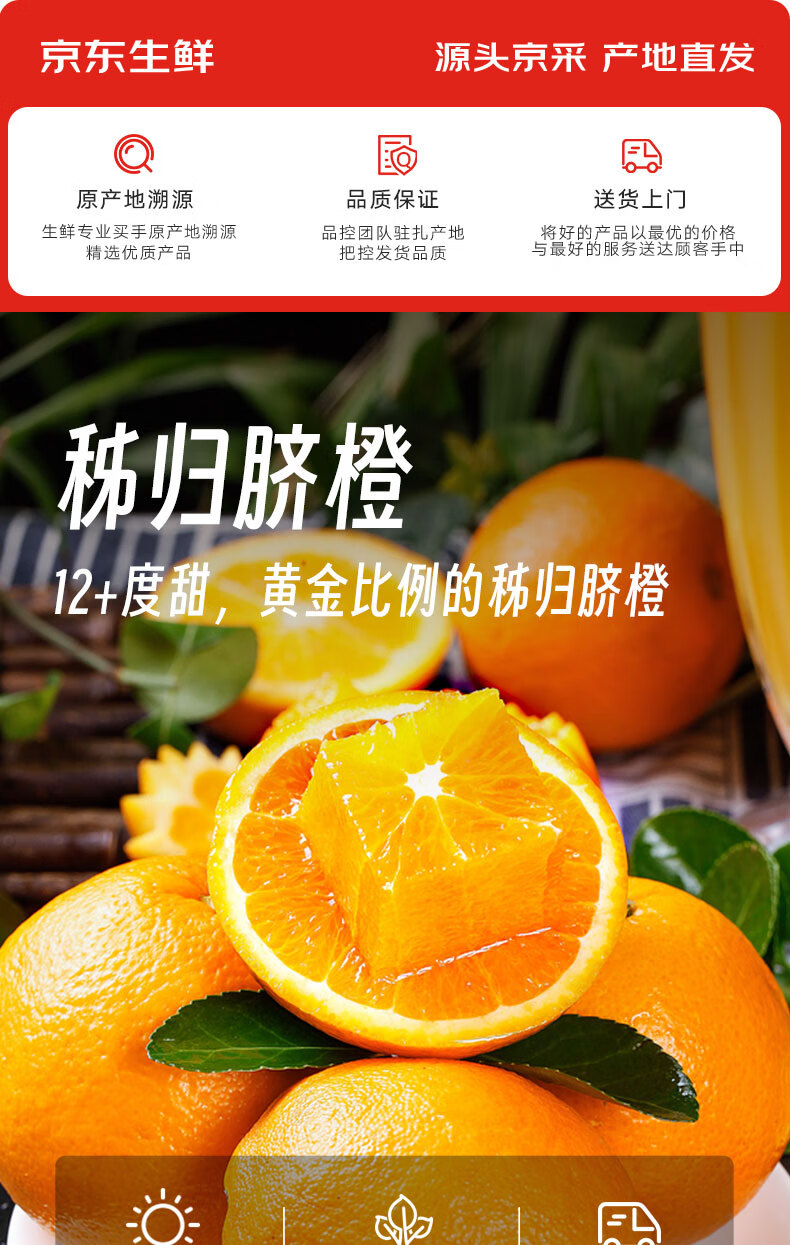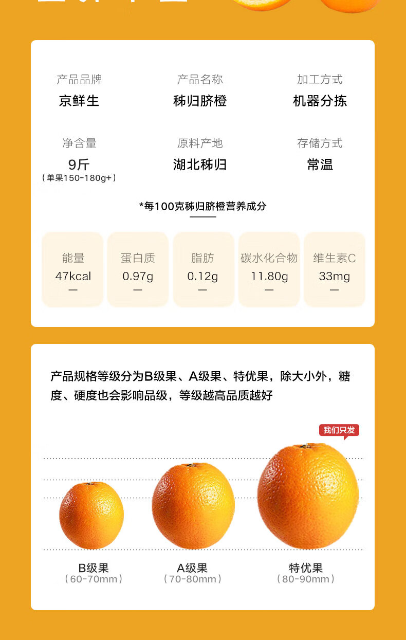 京鲜生 赣南早橙净重9斤 单果约230g以上 新鲜水果 源头直发包邮